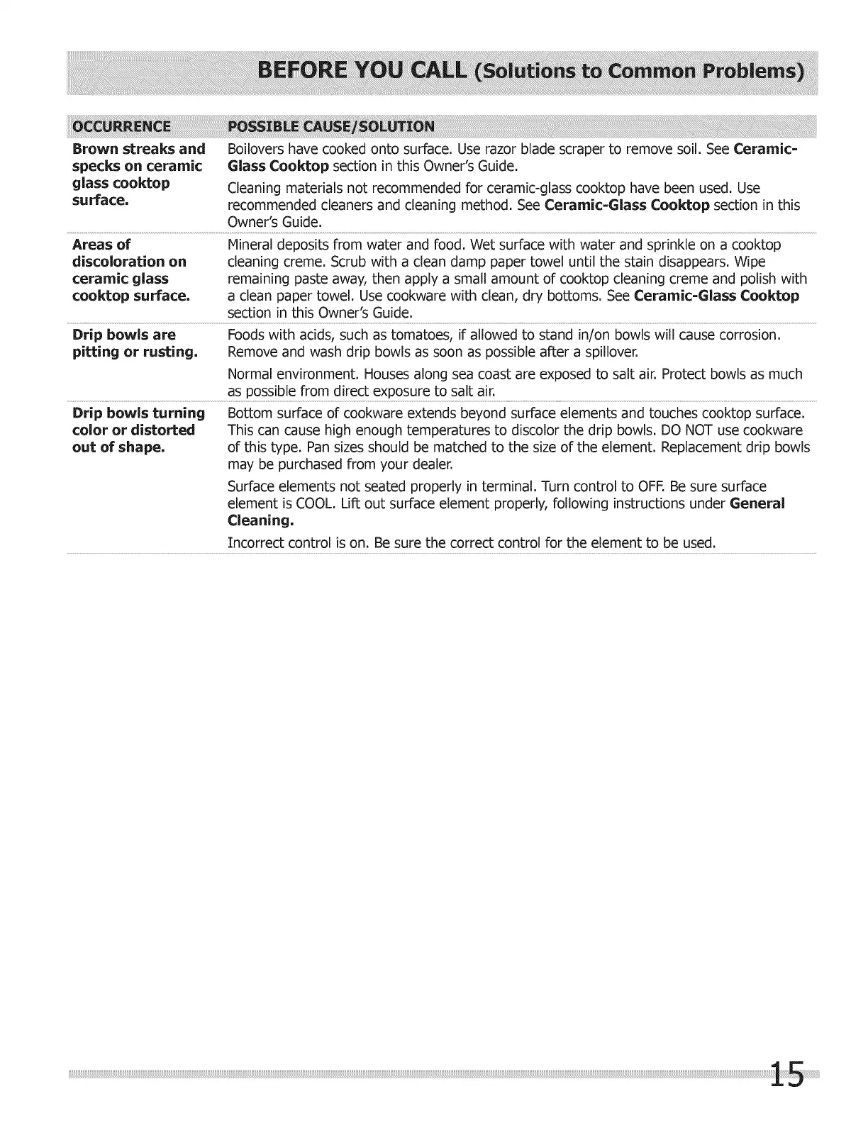 specks on ceramic Glass Cool{top section in this Owner's Guide.