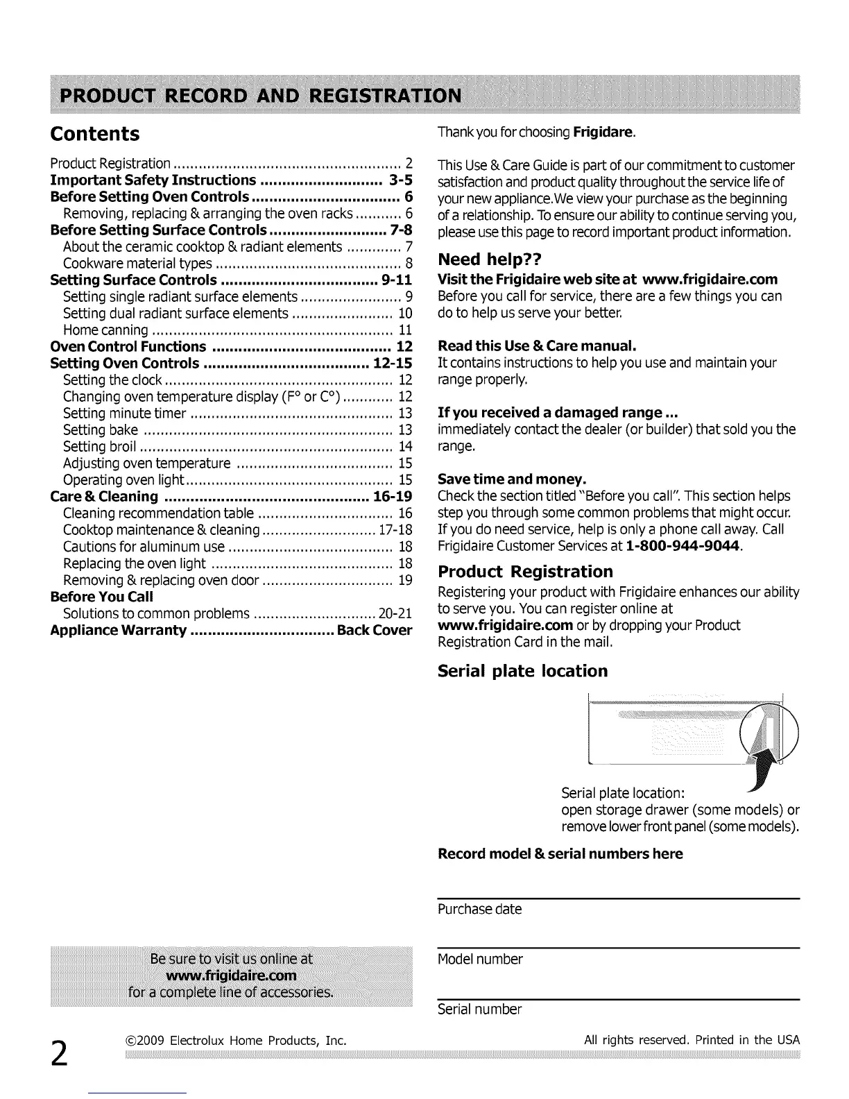 @2009 Electrolux Home Products, Inc. All rights reserved. Printed in the USA