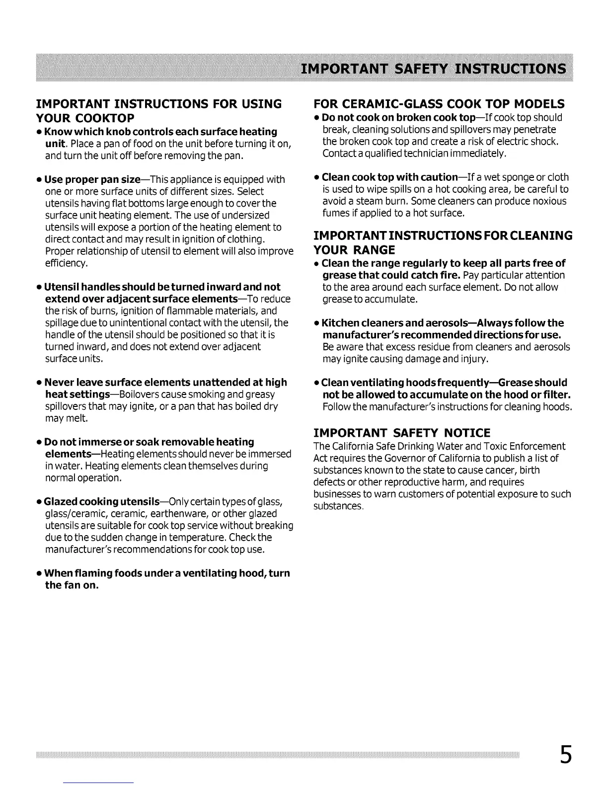 FOR CERAMIC-GLASS COOK TOP MODELS