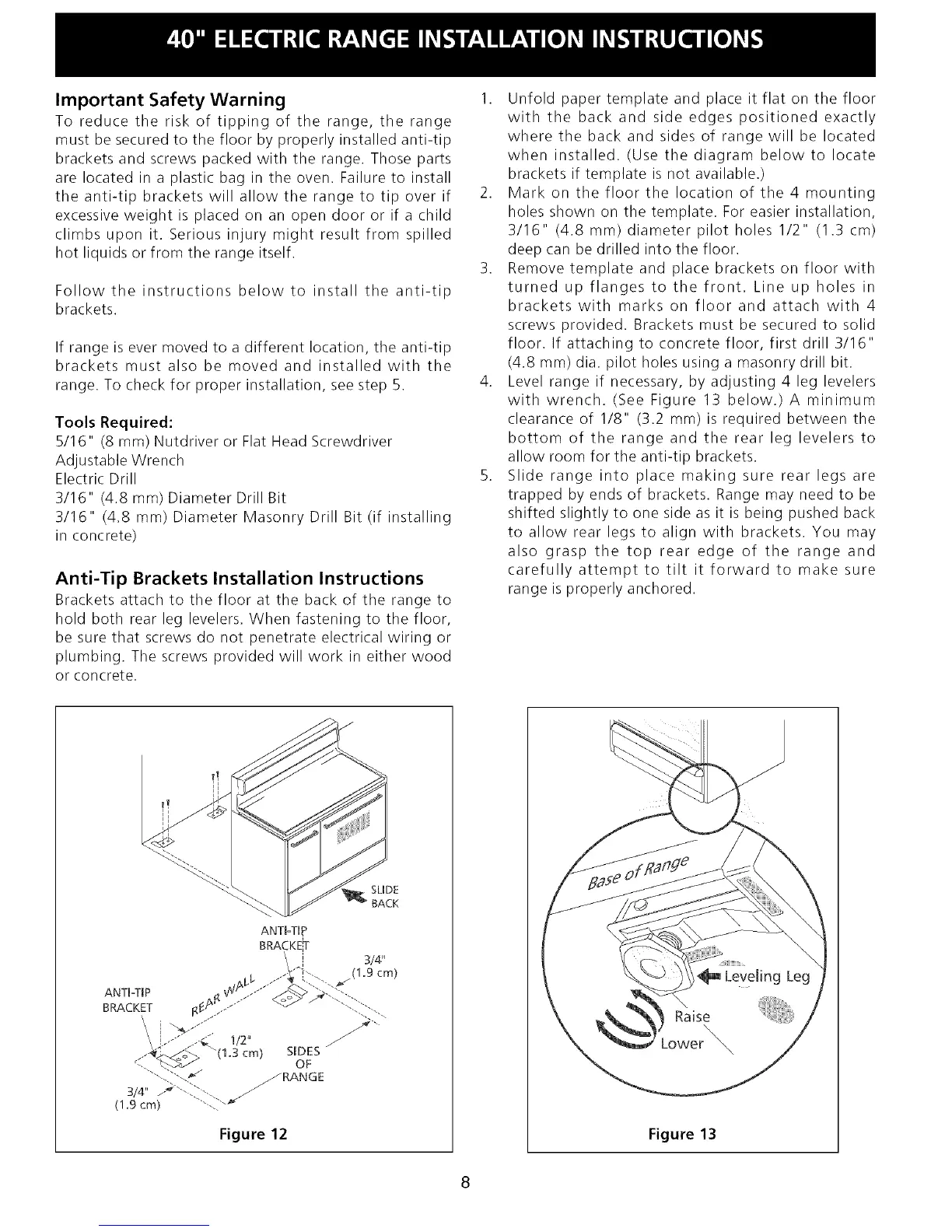 3/16" (4.8 ram) diameter pilot holes 1/2" (1.3 cm)