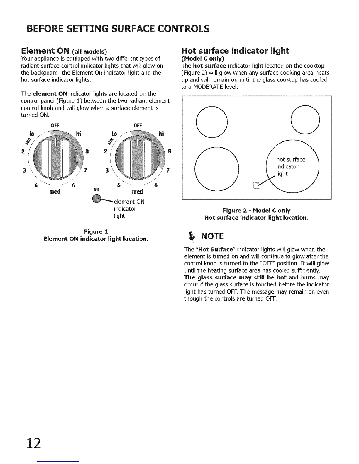 (Figure 2) will glow when any surface cooking area heats