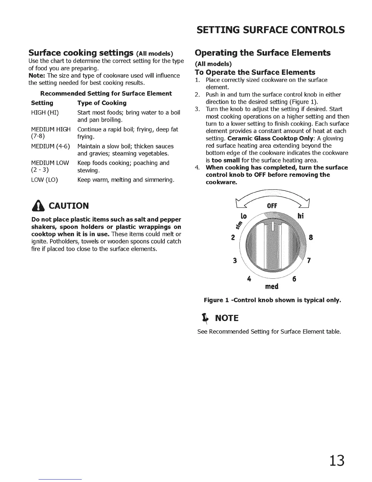 2. Push in and turn the surface control knob in either
