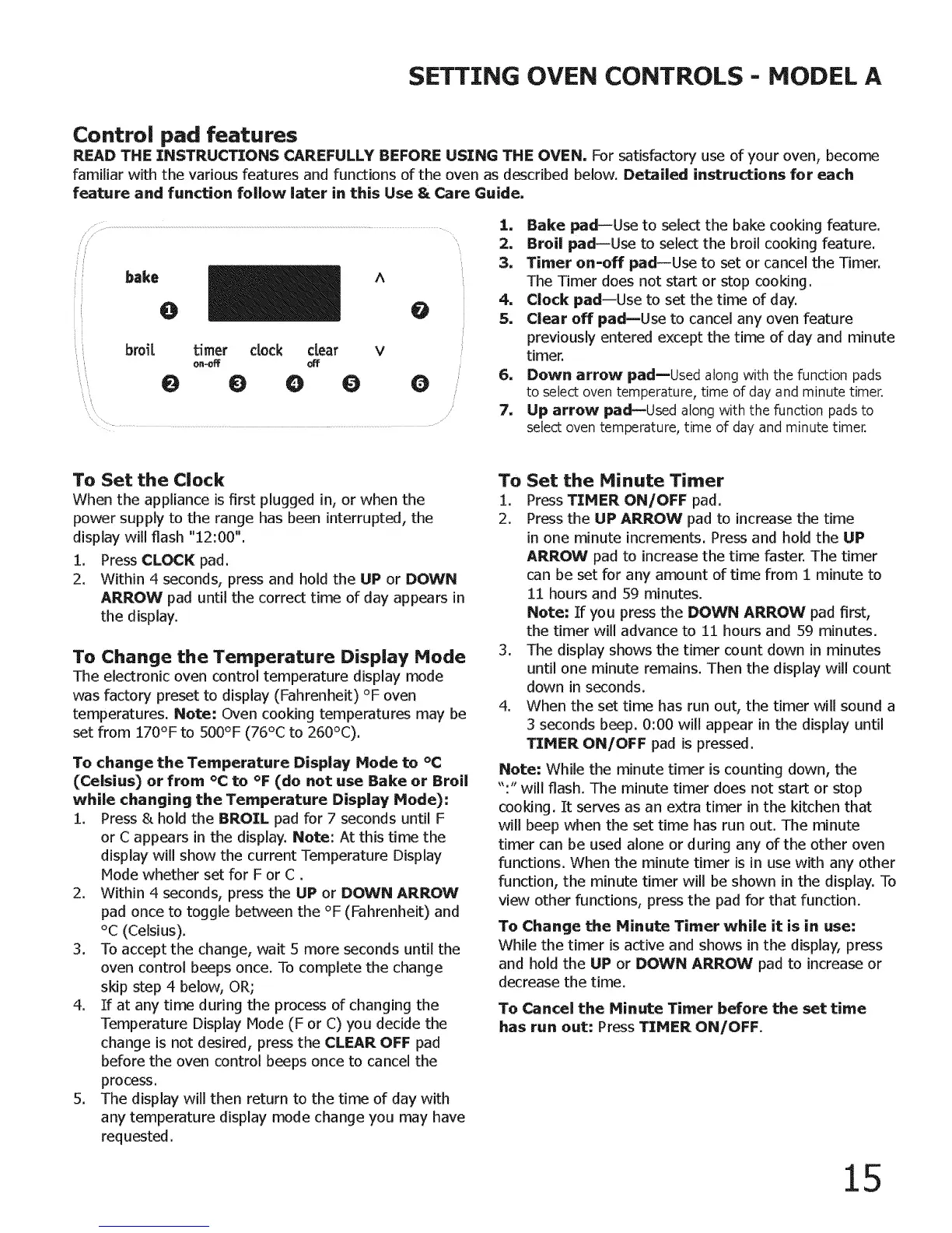 SETTING OVEN CONTROLS - MODEL A