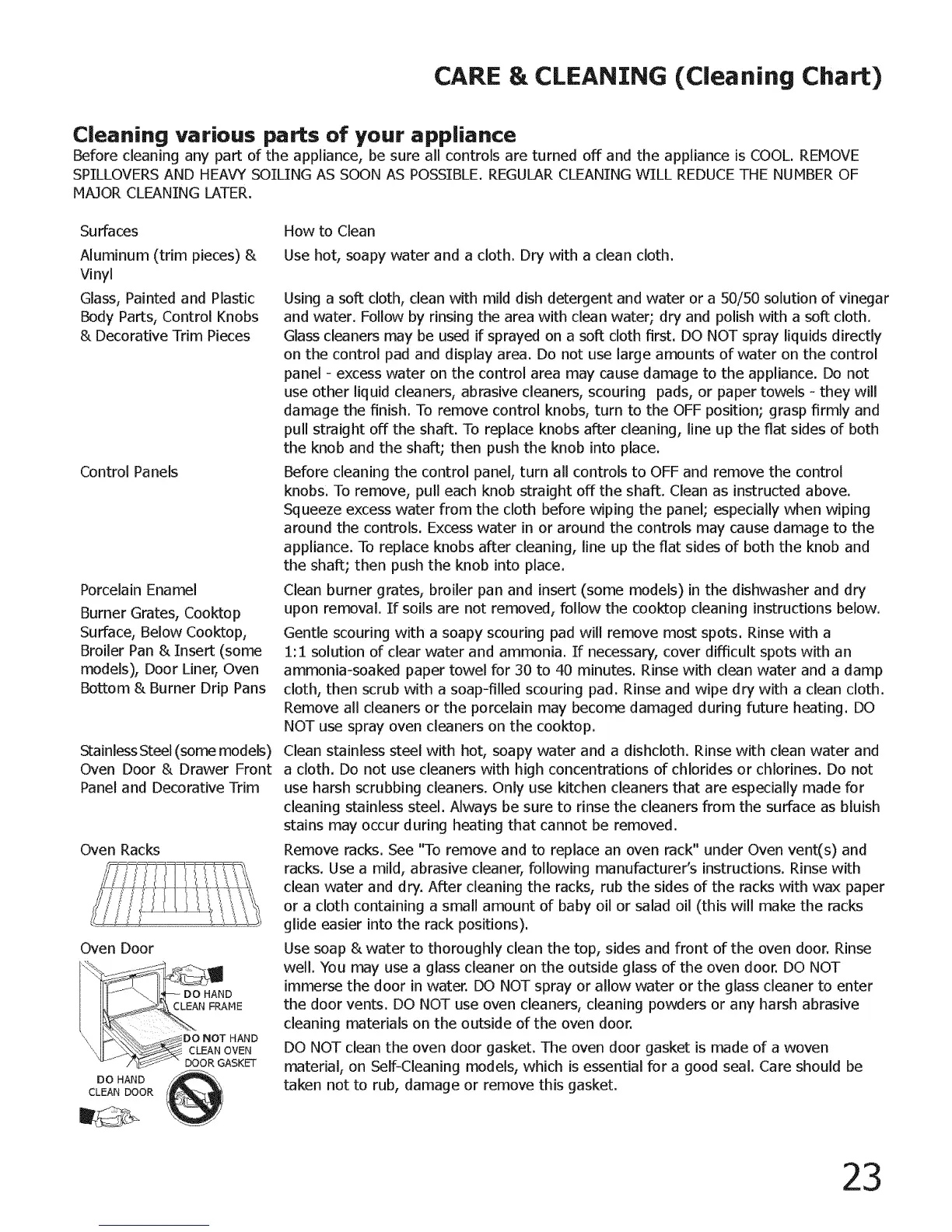 the door vents. DO NOT use oven cleaners, cleaning powders or any harsh abrasive
