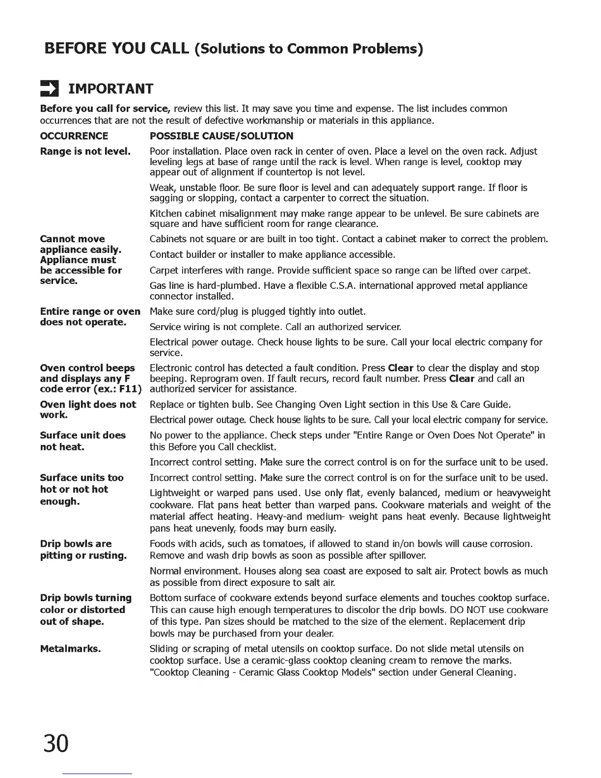 Before you call for service, reviev¢ this list. It may save you time and expense. The list includes common