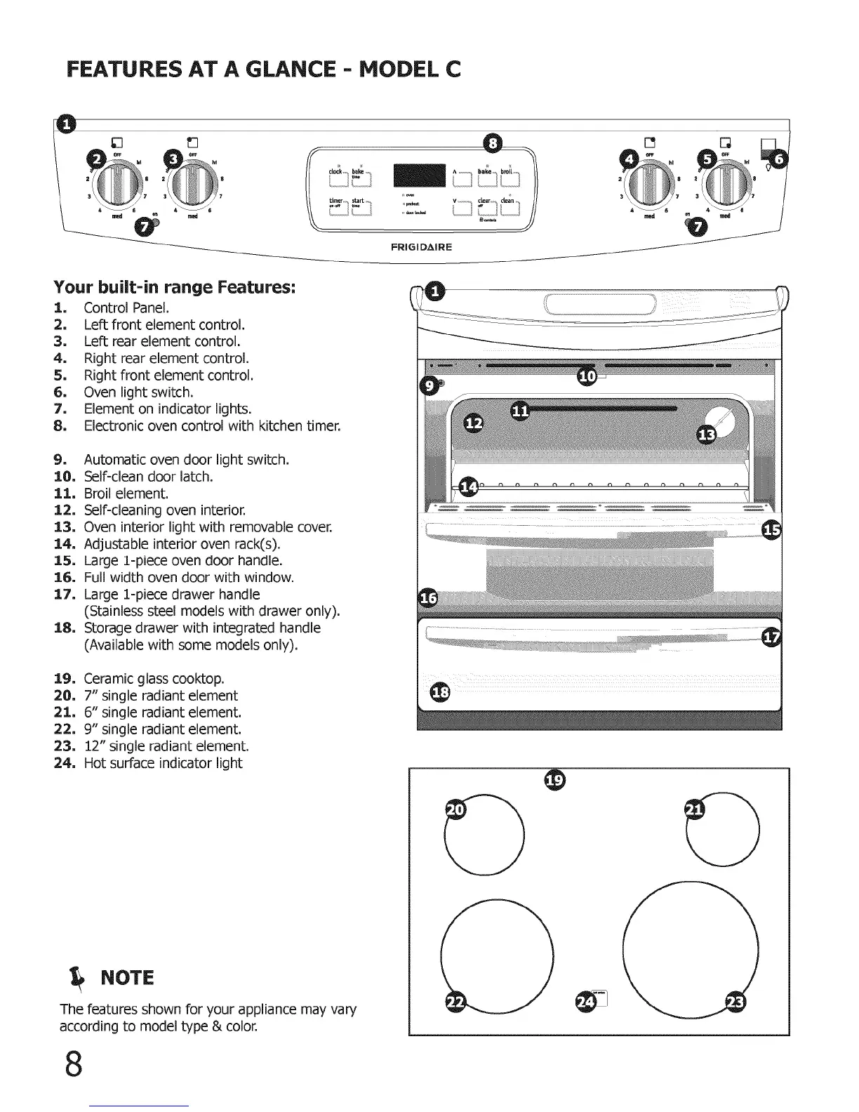 8, Electronic oven control with kitchen timer.