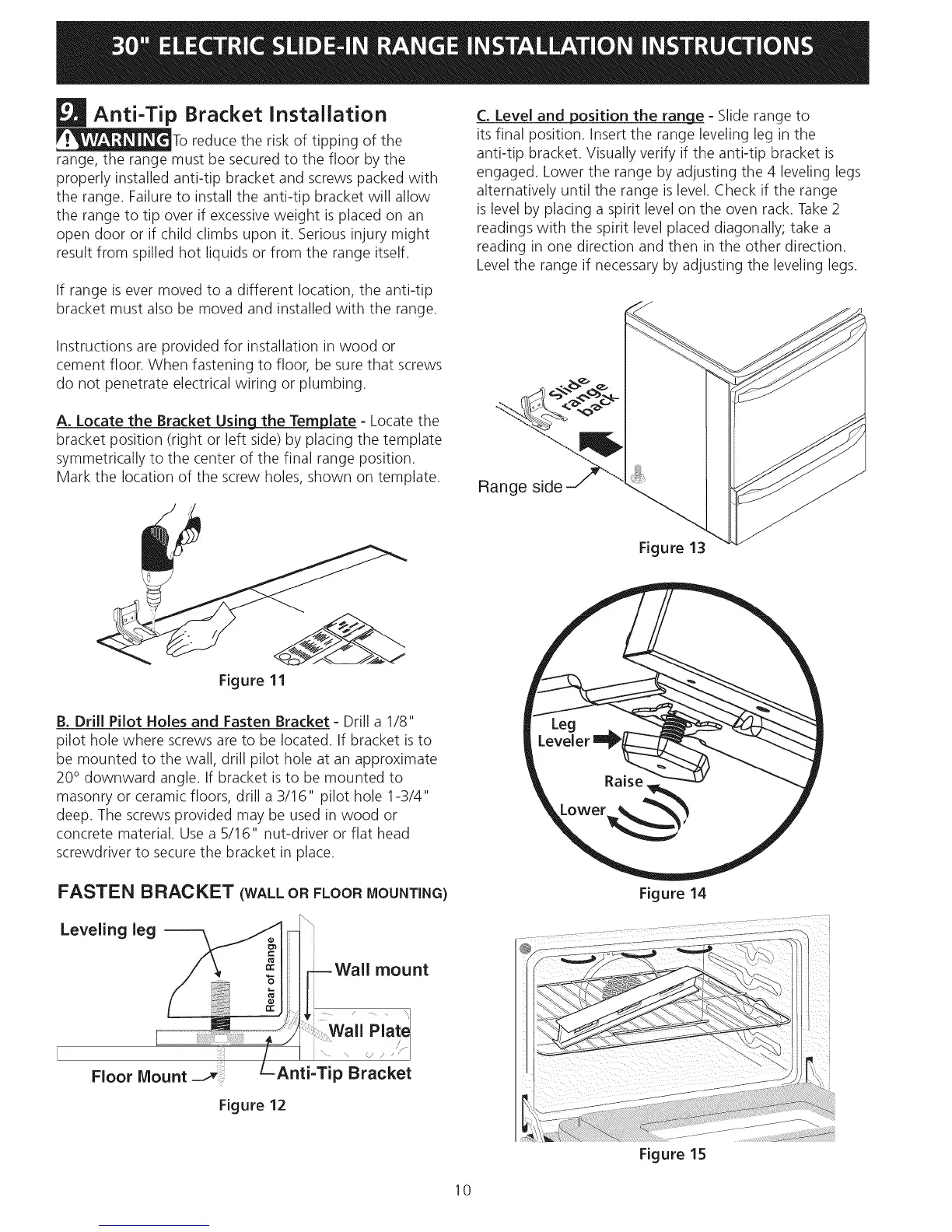 the range. Failure to install the anti-tip bracket will allow