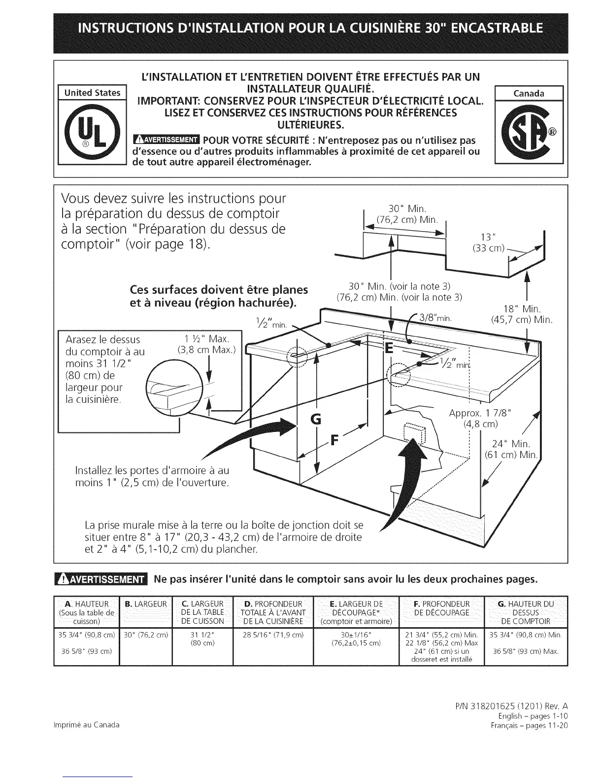 353/4"(90,8cm) 30"(76,2cm) 31 1/2" 285/16"(71,9cm) 30_+1/16" 21 3/4" (55,2 cm) Min. 353/4"(90,Scm) Min.