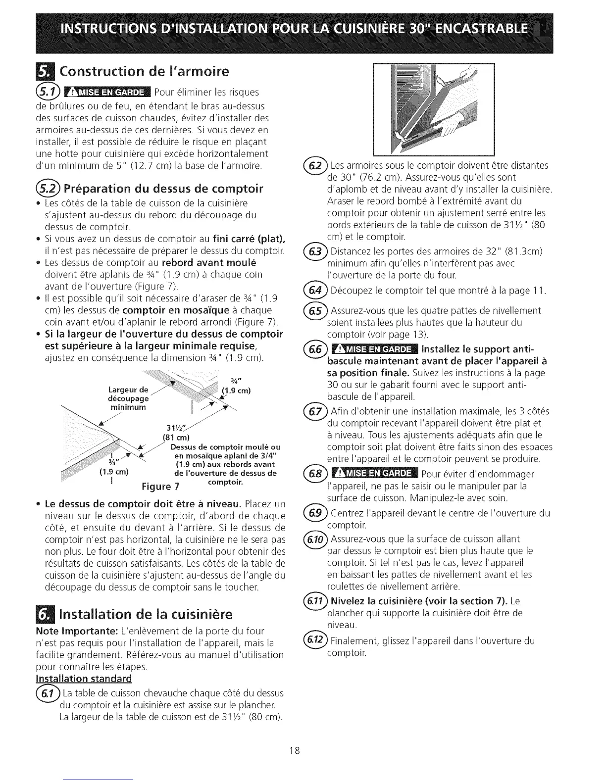 • Le dessus de comptoir doit Ctre a niveau. Placez un
