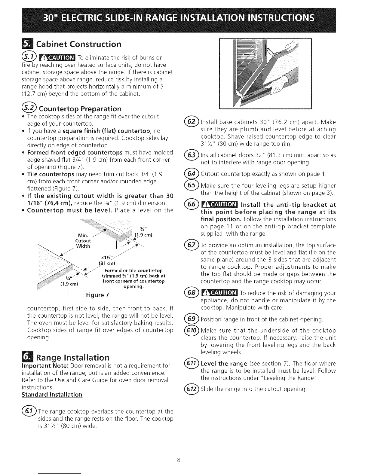 • The cooktop sides of the range fit over the cutout
