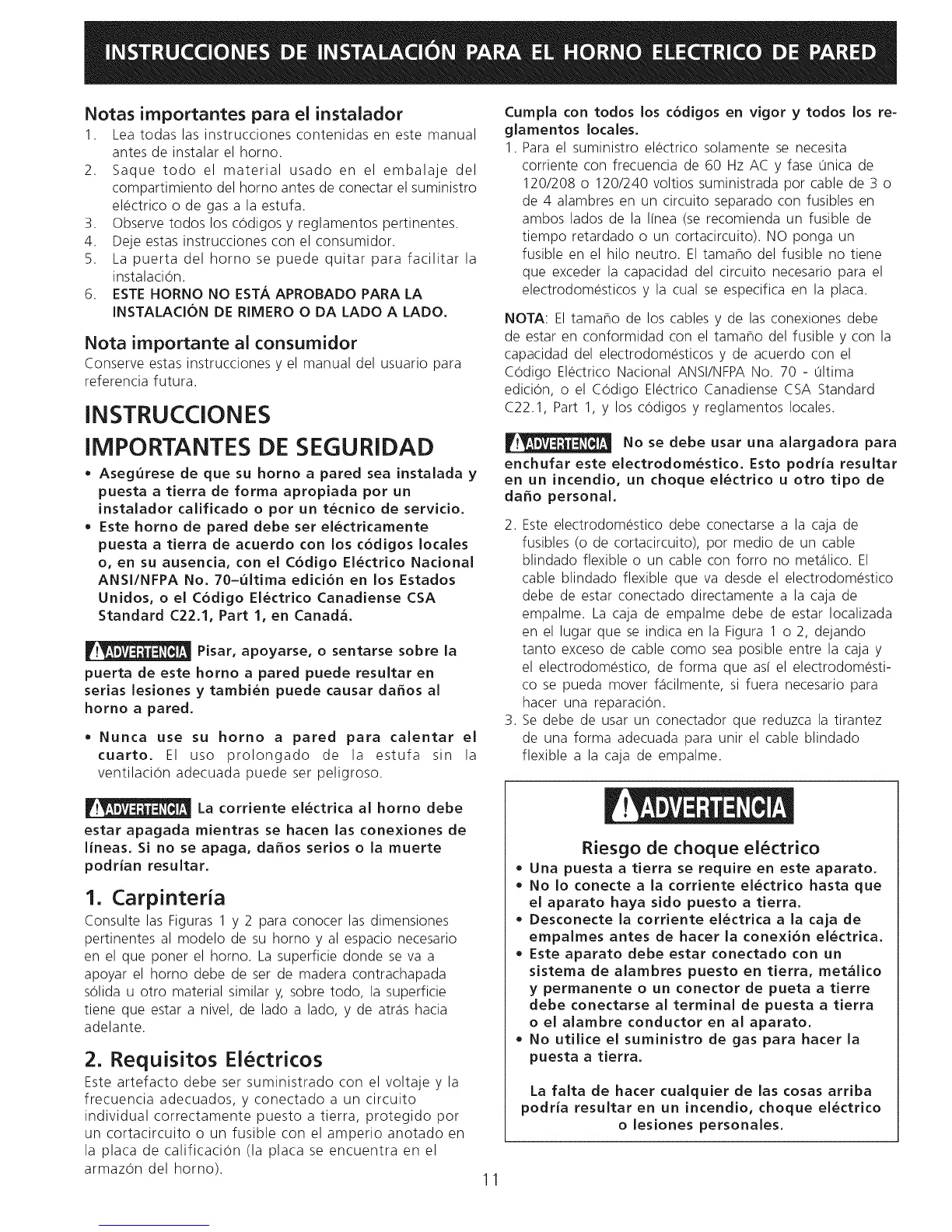 • Este homo de pared debe set electricarnente
