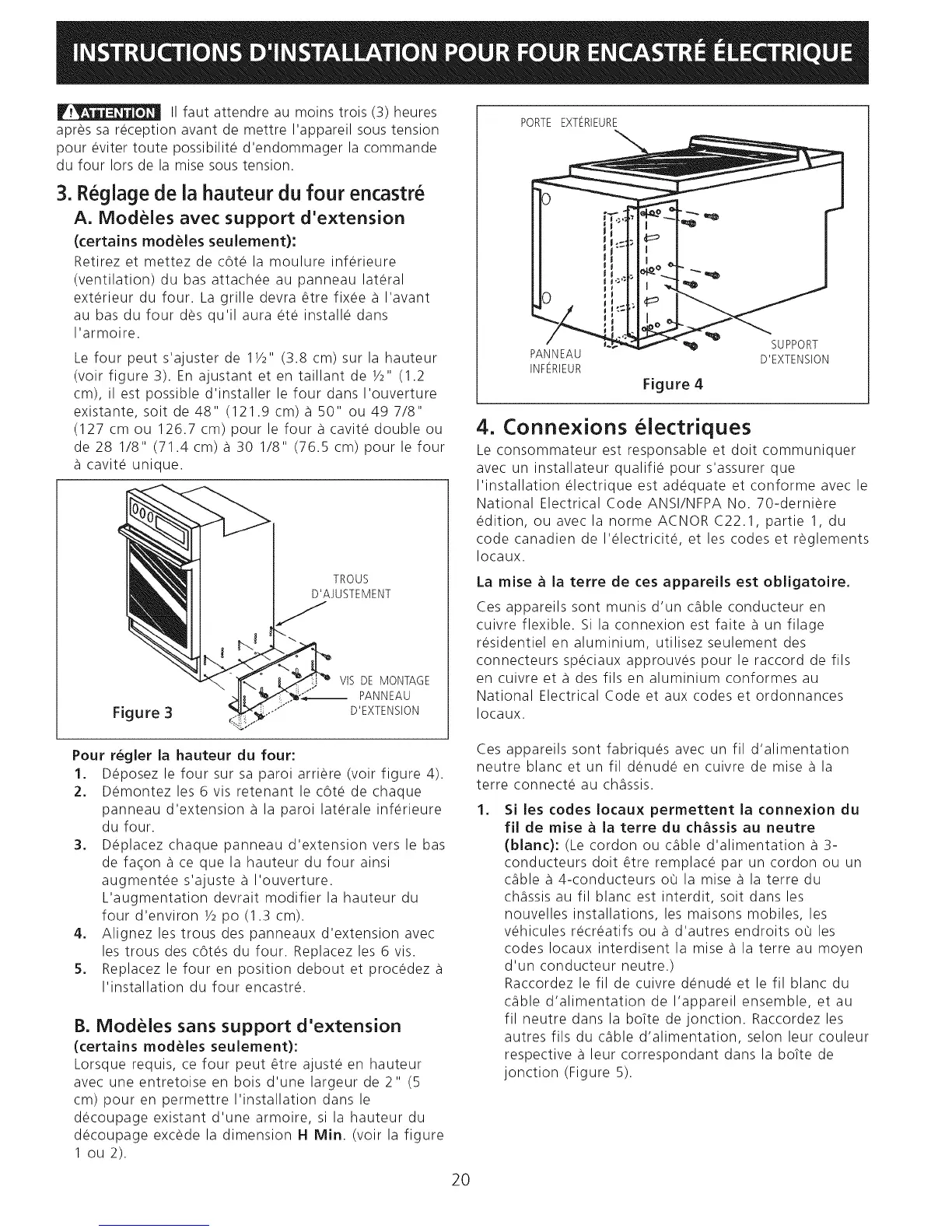 Lorsque requis, ce four peut _tre ajuste en hauteur