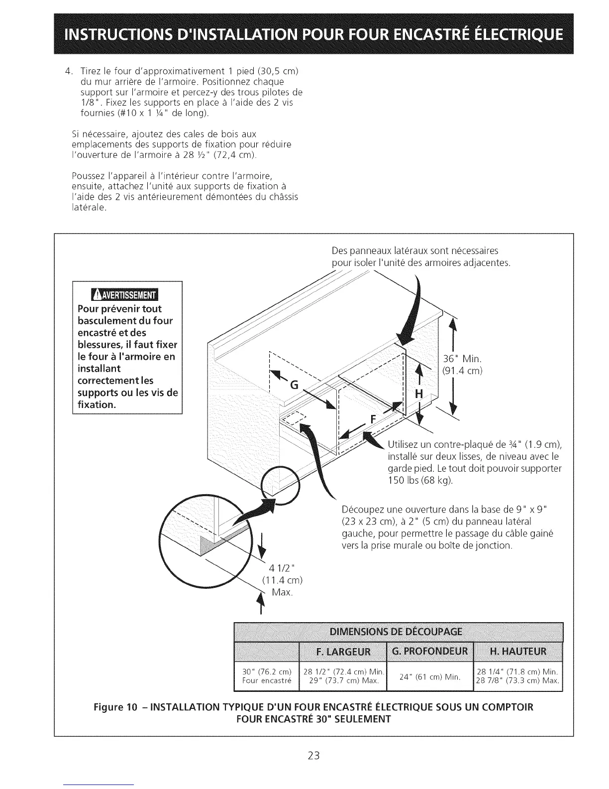 Figure 10 - INSTALLATION TYPIQUE D'UN FOUR ENCASTRI_ ELECTRIQUE SOUS UN COMPTOIR