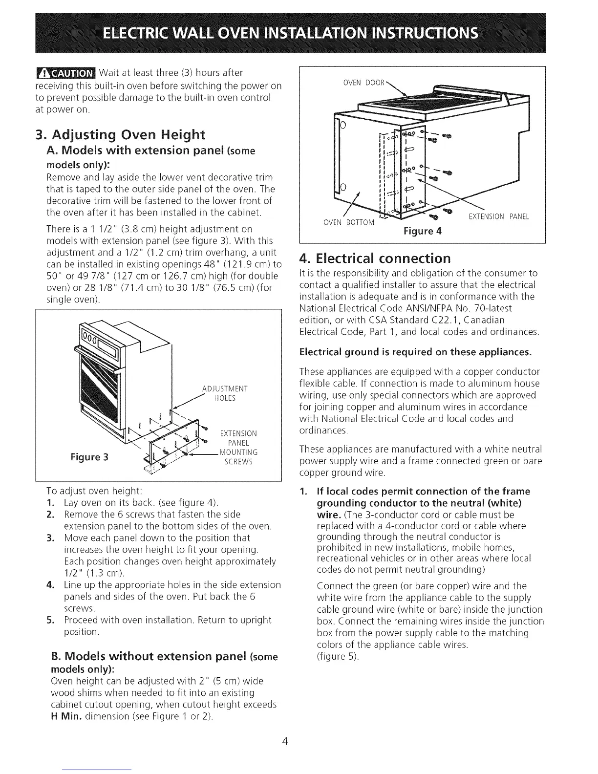 oven) or 28 1/8" (71.4 cm) to 30 1/8" (76.5 cm) (for