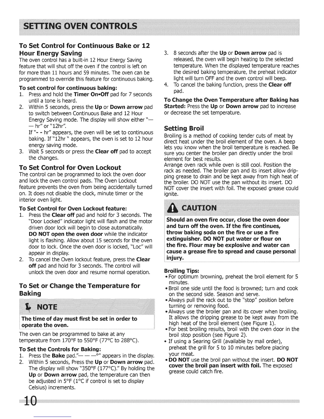 and lock the oven control pads. The Oven Lockout