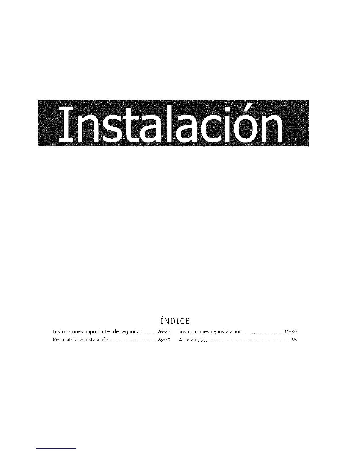 Instrucclones Importantes de segundad ........ 26-27 Instrucclones d_ mstalacl6n ......................... 31-34