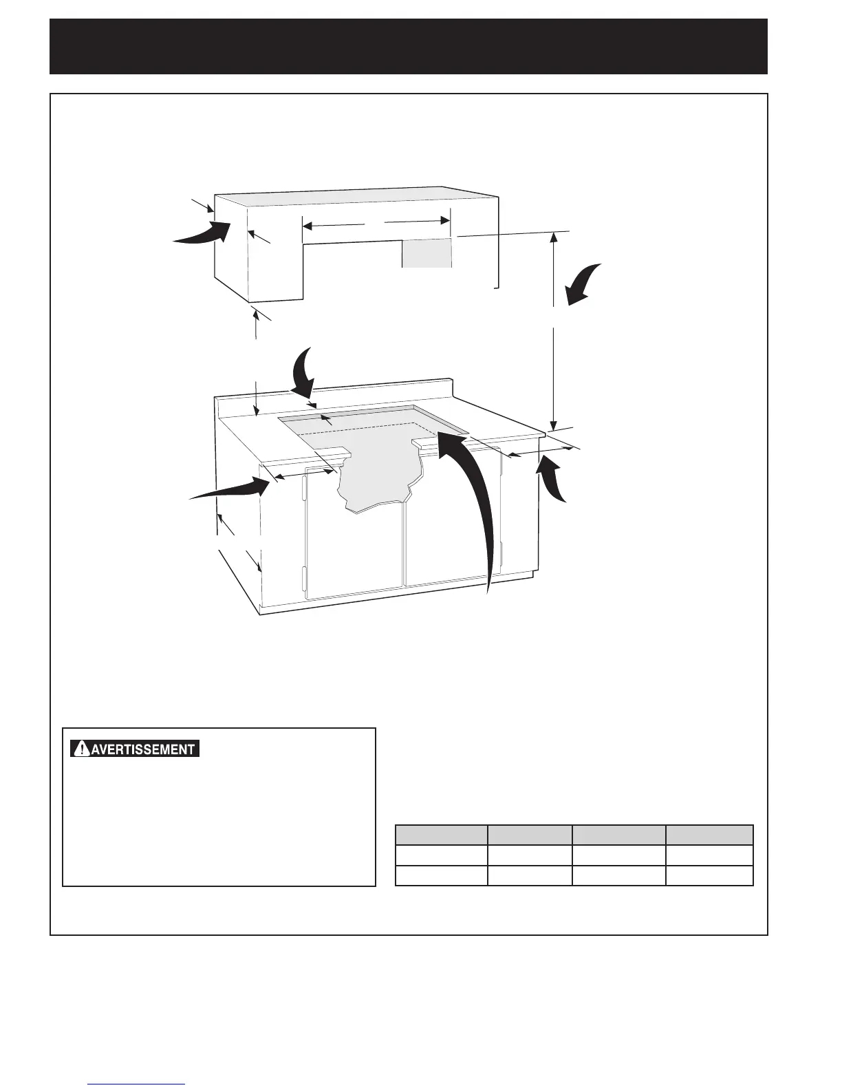 minimum de 5" (12.7 cm) la base de l'armoire.