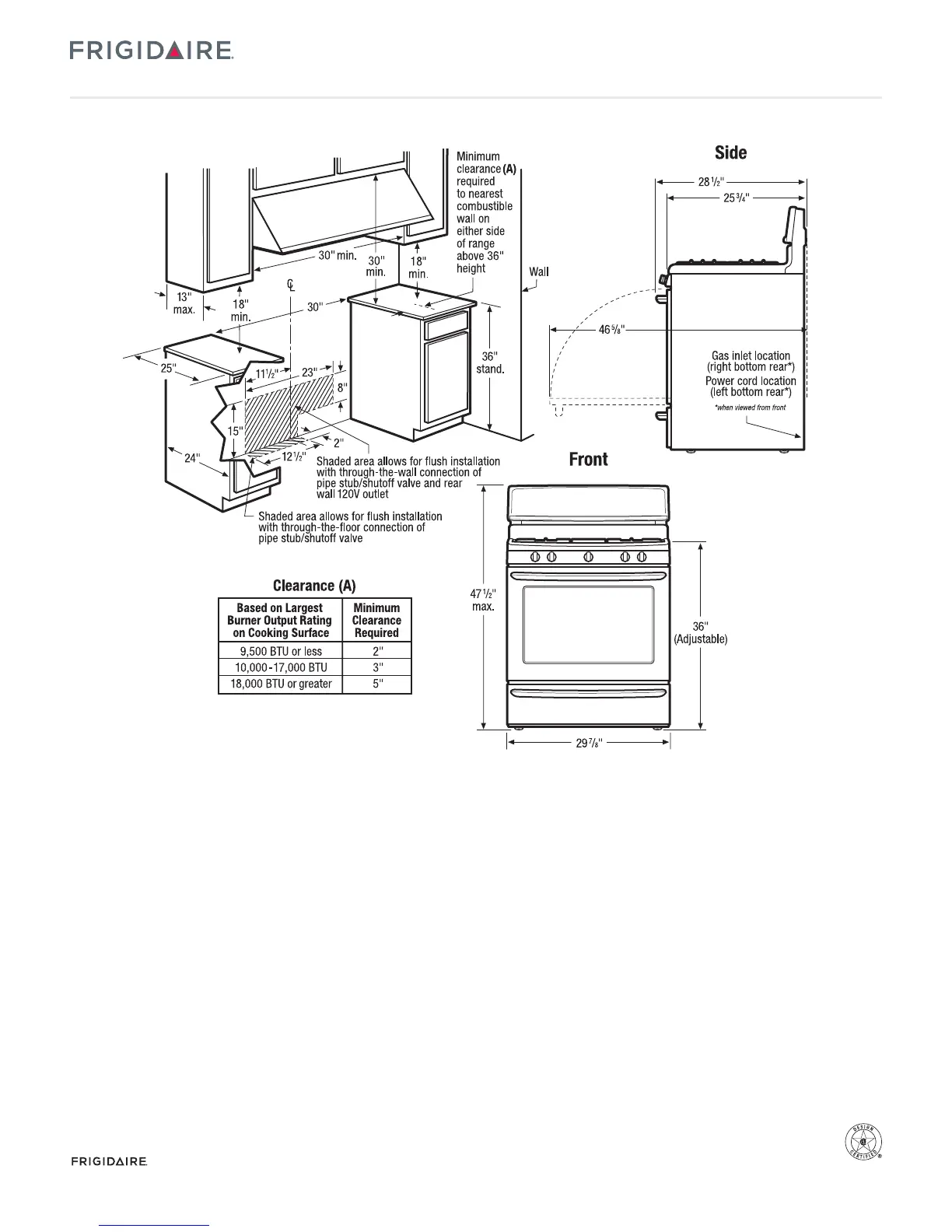 Range can be installed flush to wall with 0" minimum rear clearance.