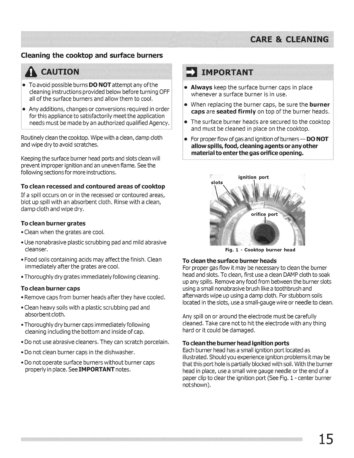 paper clip to clear the ignition port (See Fig. 1 - center burner