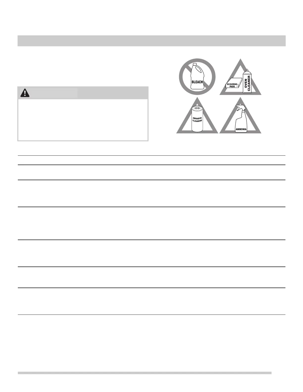 • If ammonia or appliance cleaners are used, they must