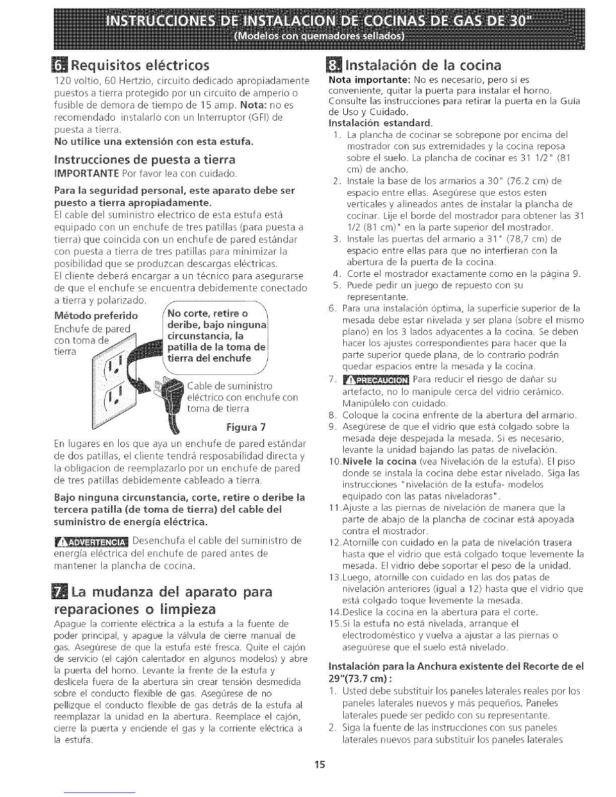 10.Mvele la codna (vea NivelaciOn de la estufa). El piso