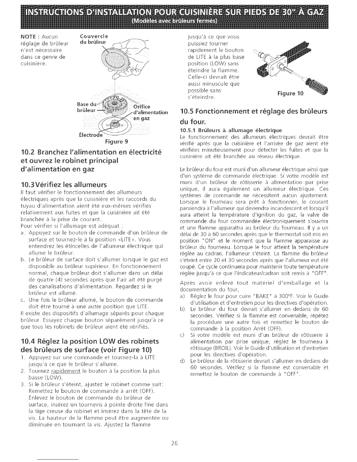 b. Le brOleur de surface doit s'a!lumer Iorsque le gaz est