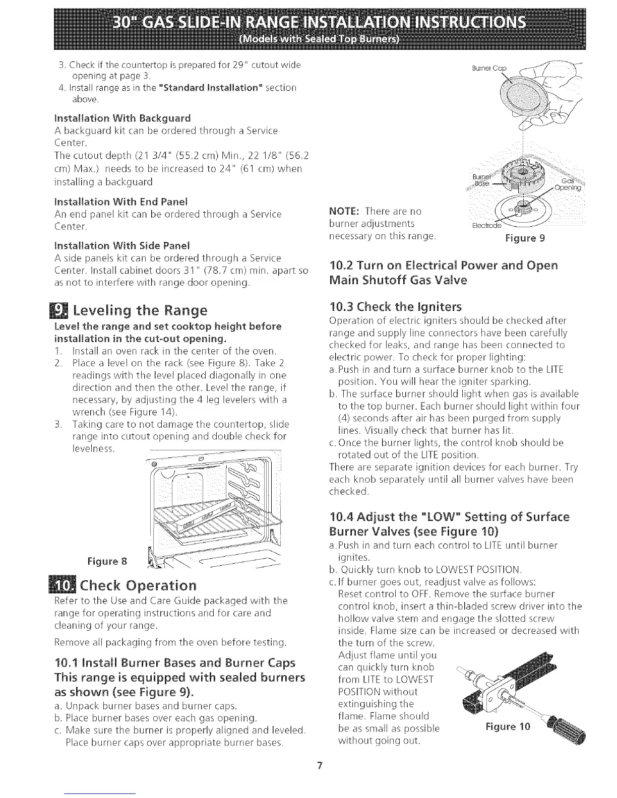 10.1 Install Burner Bases and Burner Caps