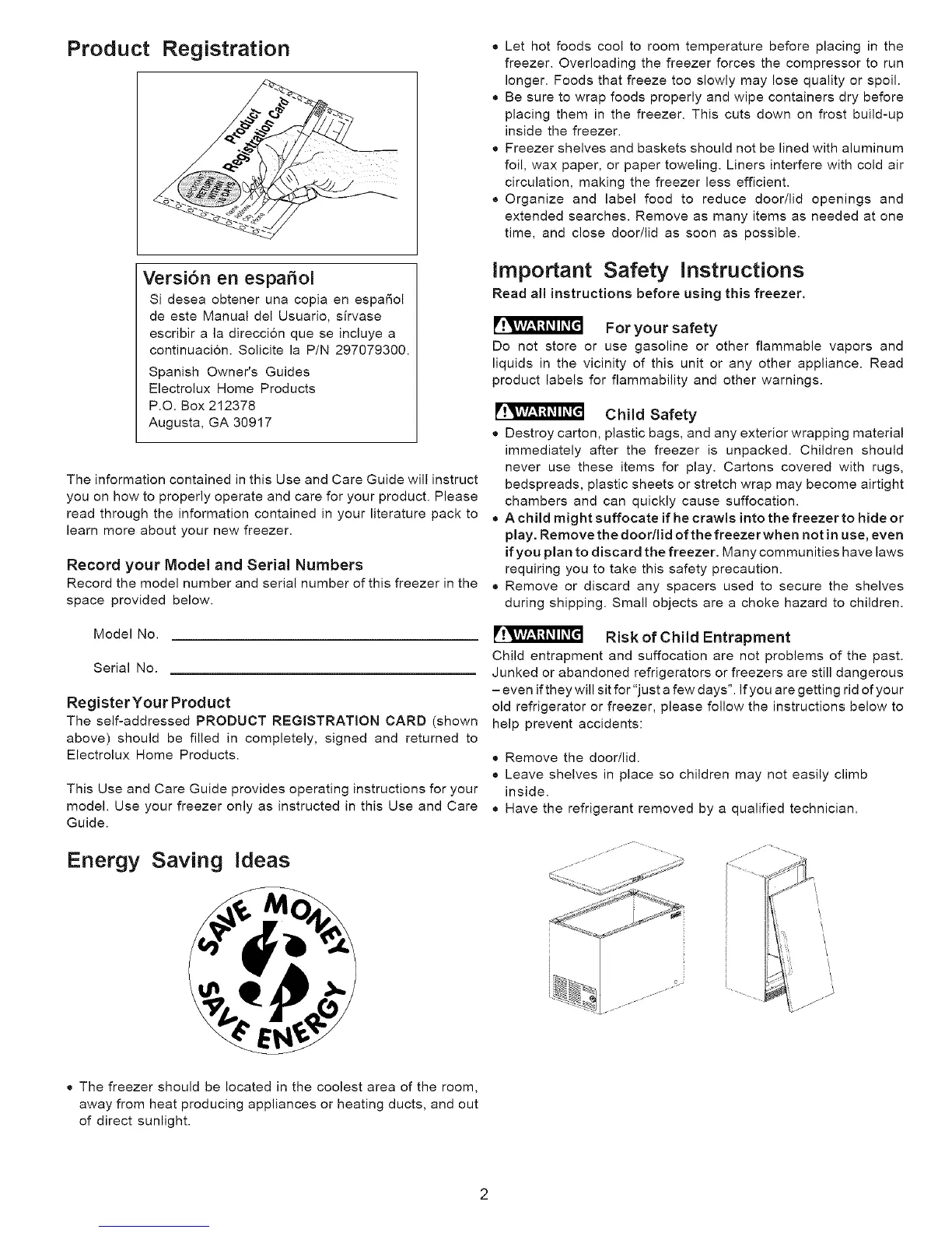 Record the model number and serial number of this freezer in the