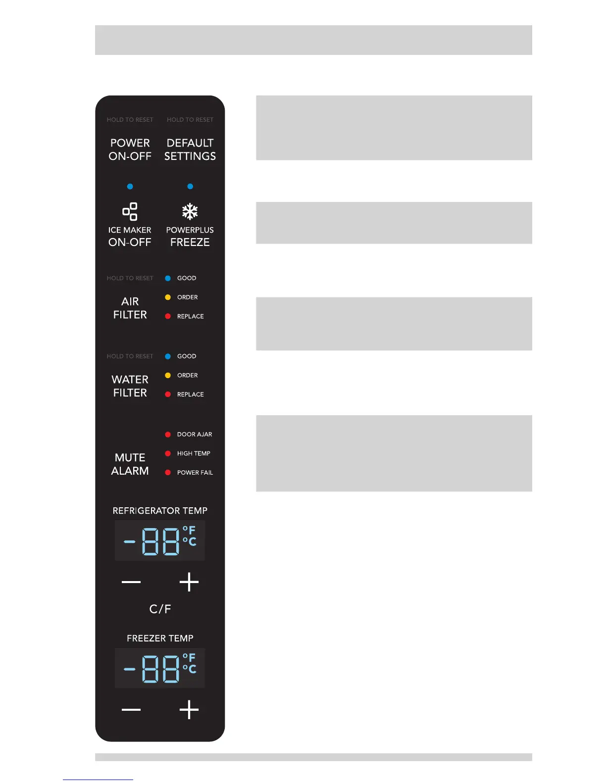 FREEZER TEMP Allows the temperature set-