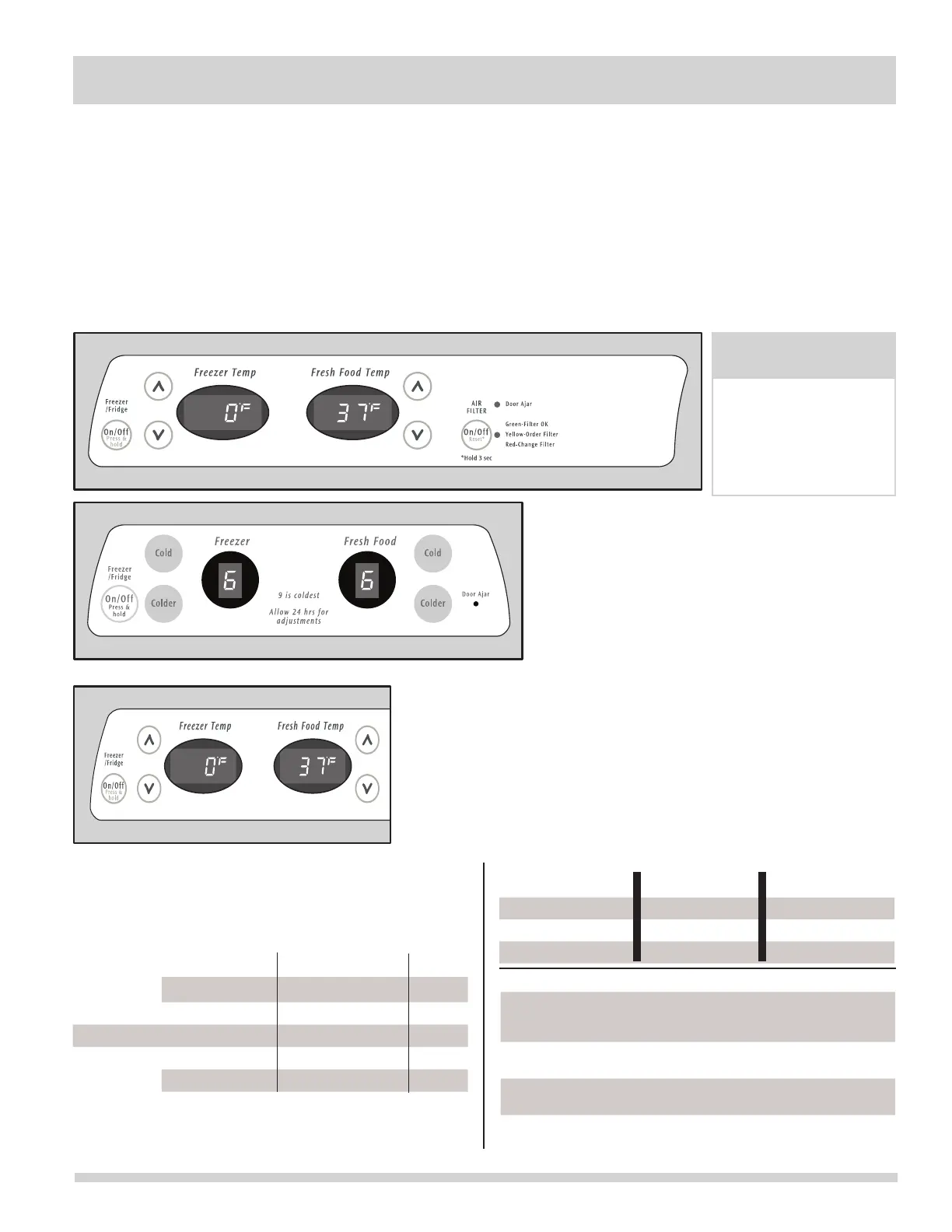and fresh food compartments. The models with a 2-digit temperature display are for reference only, and do not display