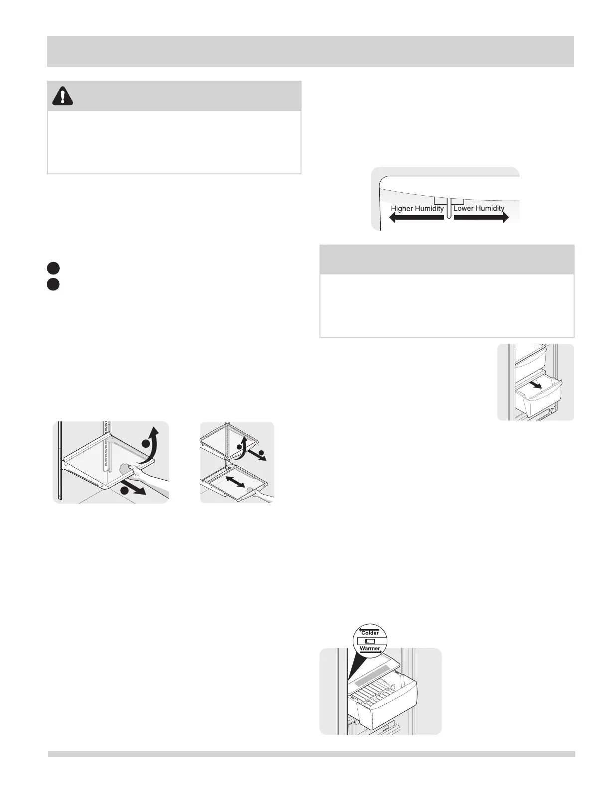needs. Before adjusting the shelves, remove all food.