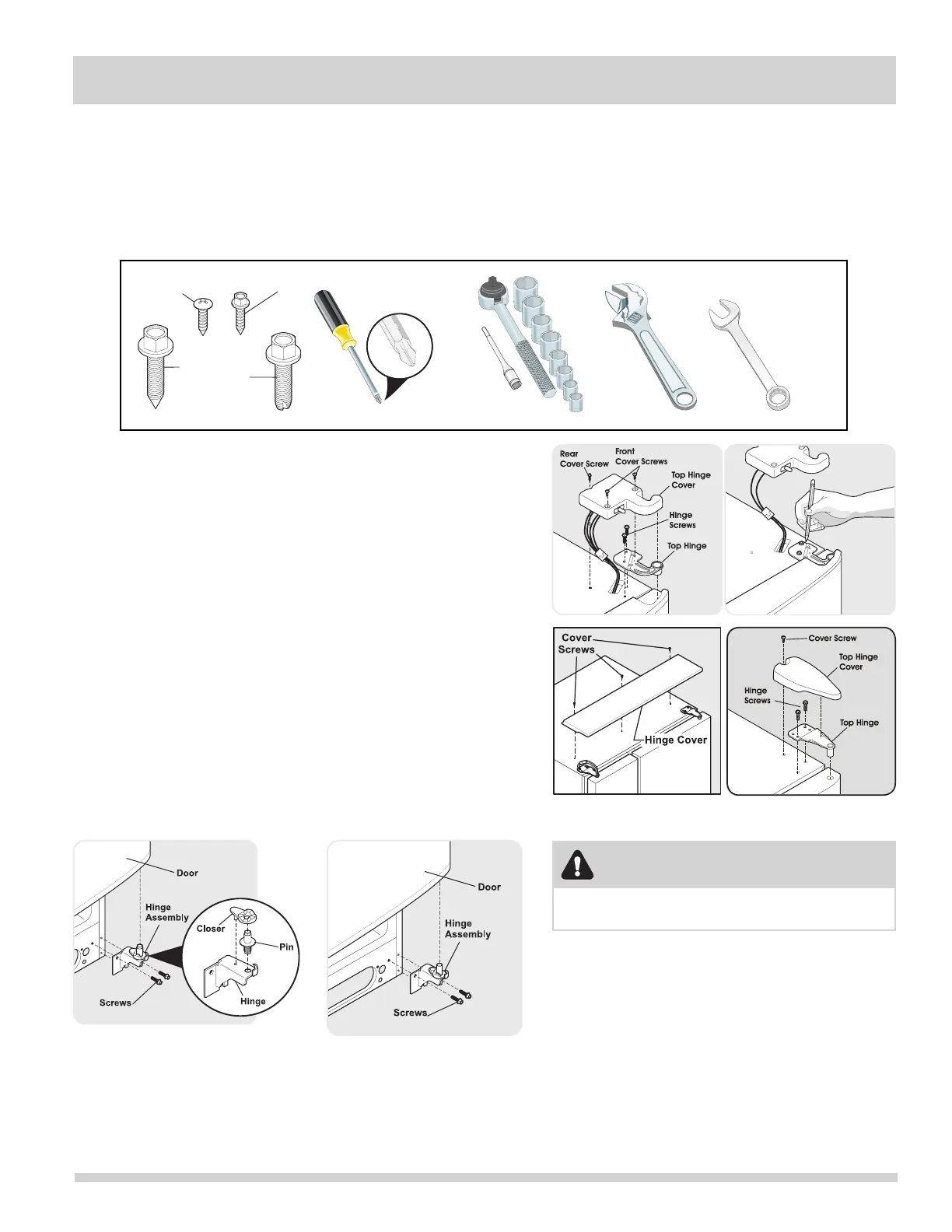 3 Remove the two bottom hinge screws and hinge if necessary.