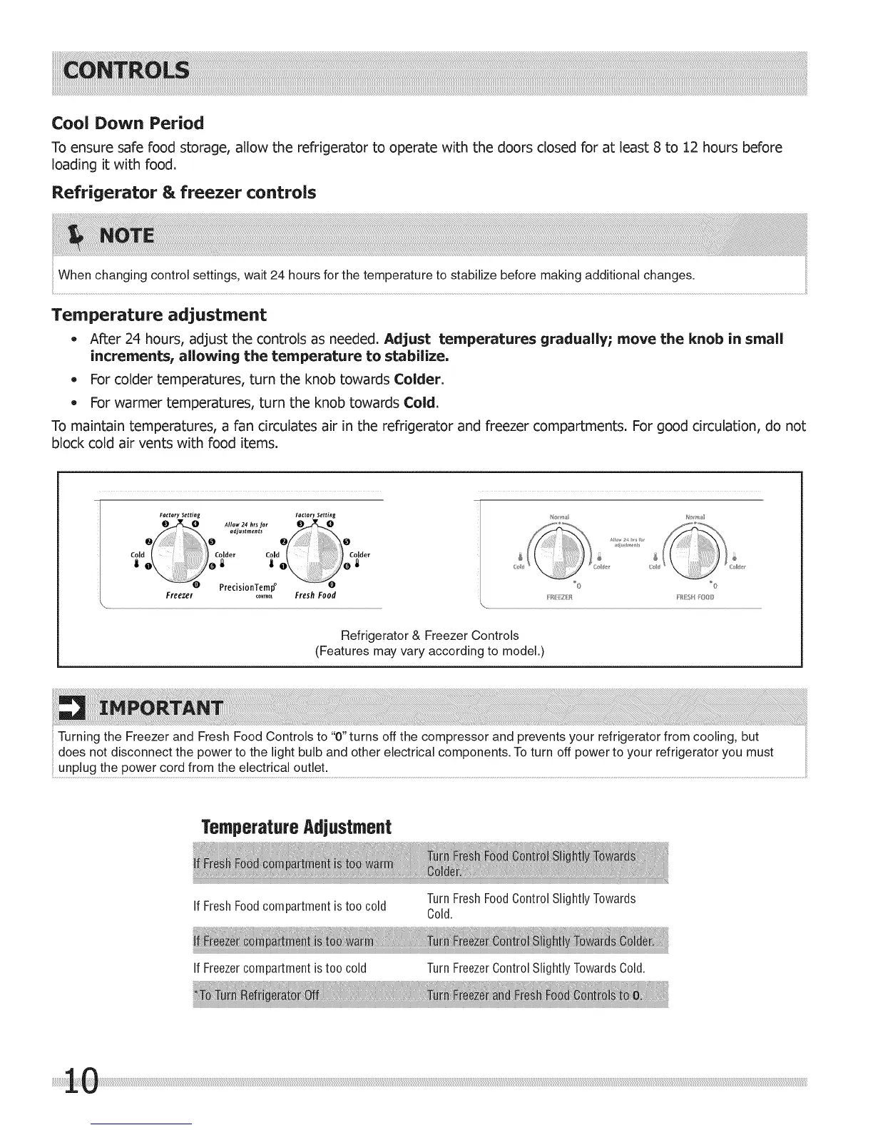 * After 24 hours, adjust the controls as needed. Adjust temperatures gradually; move the knob in small