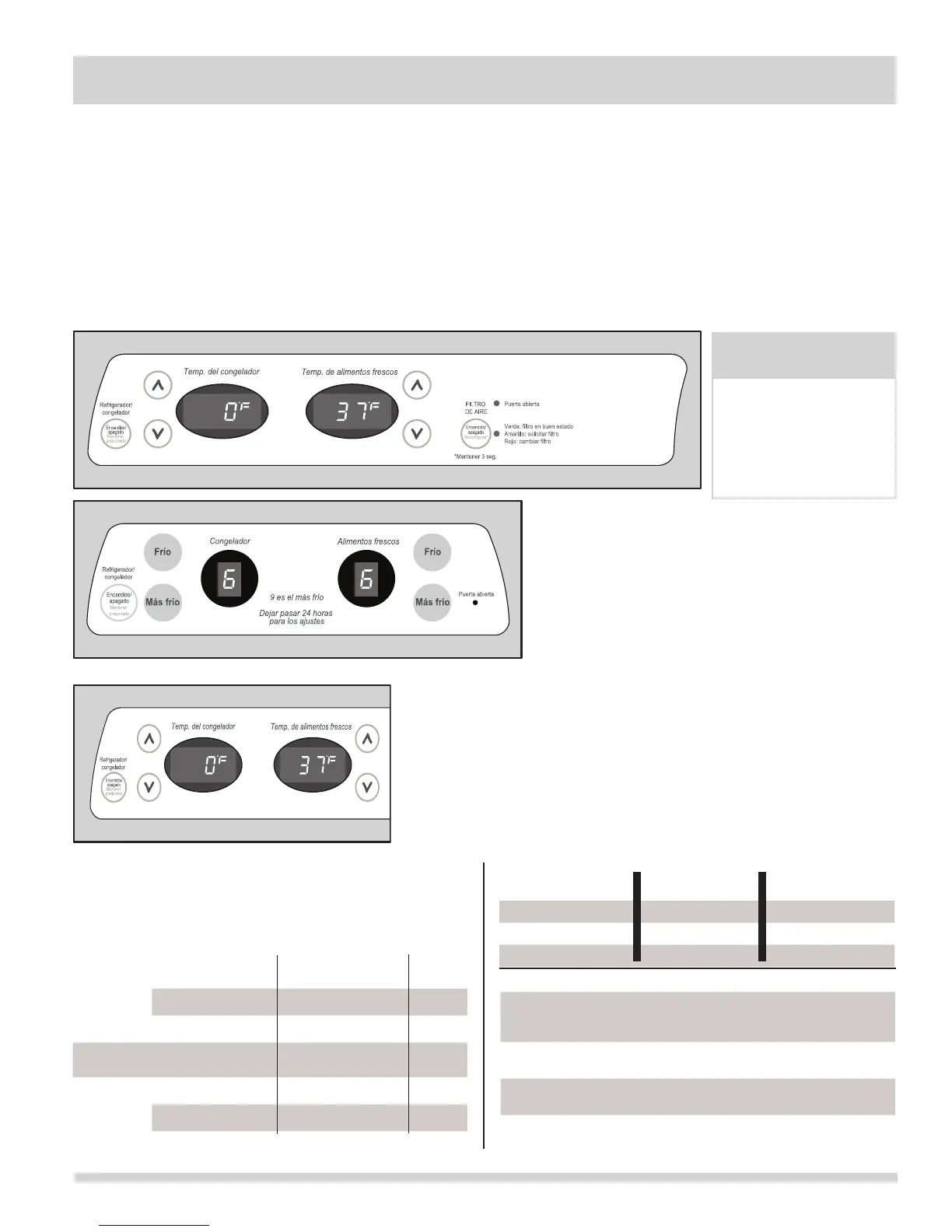 y del compartimiento para alimentos frescos. Los modelos con 2 indicadores de temperatura digitales son sólo de referencia y