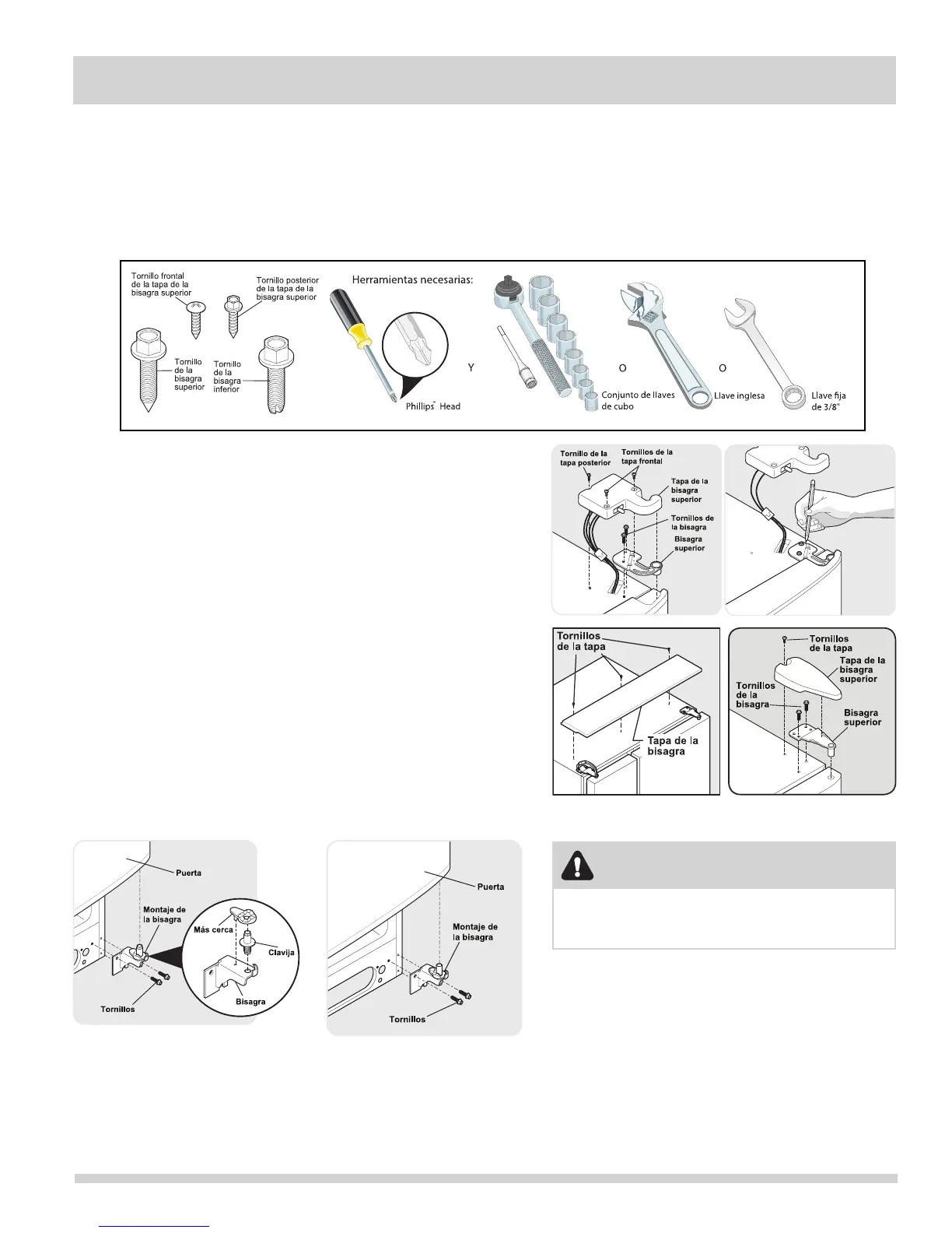 1 Quite los tres tornillos de cada cubierta sobre las bisagras superiores