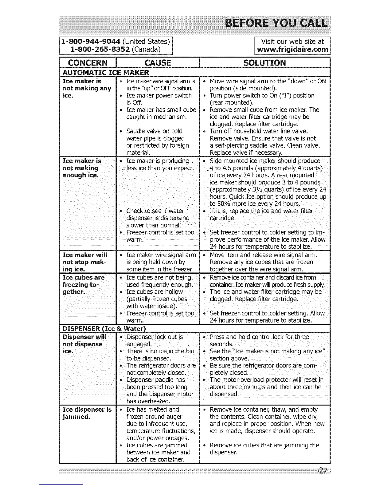 1=800=265=8352 (Canada) www.frigidaire,com