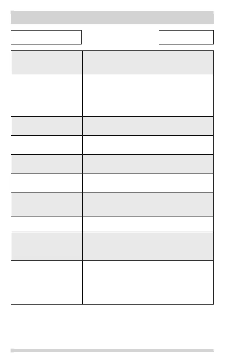 Refrigerator does not run. • Ensure plug is tightly pushed into electrical outlet.