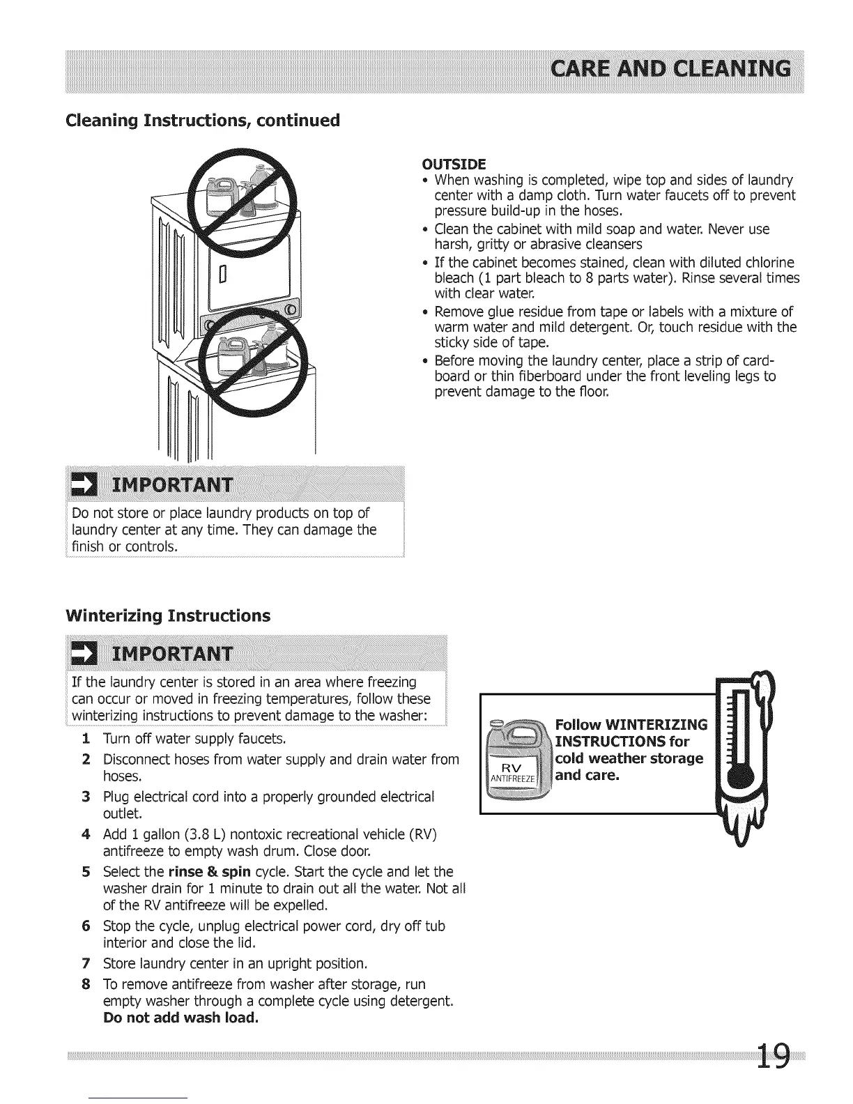 w!nteriz!ng instructions to prevent damage to the washer: ..................