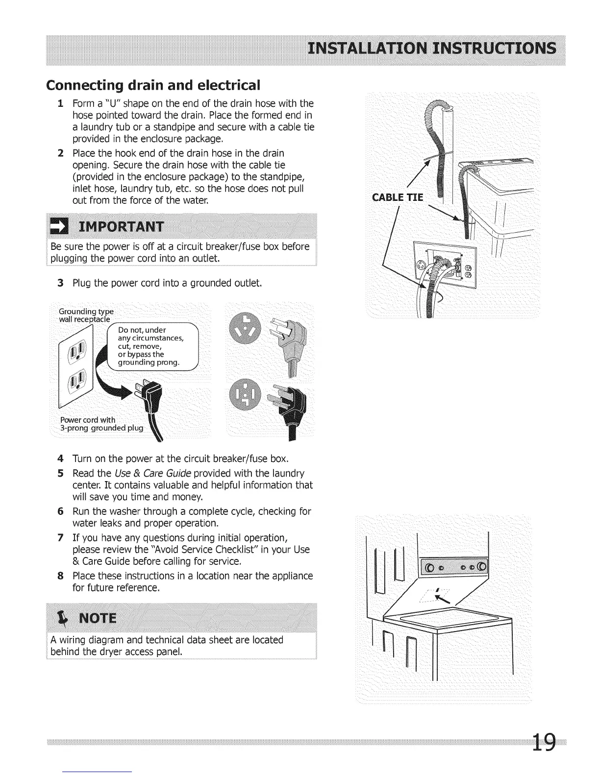 a laundry tub or a standpipe and secure with a cable tie