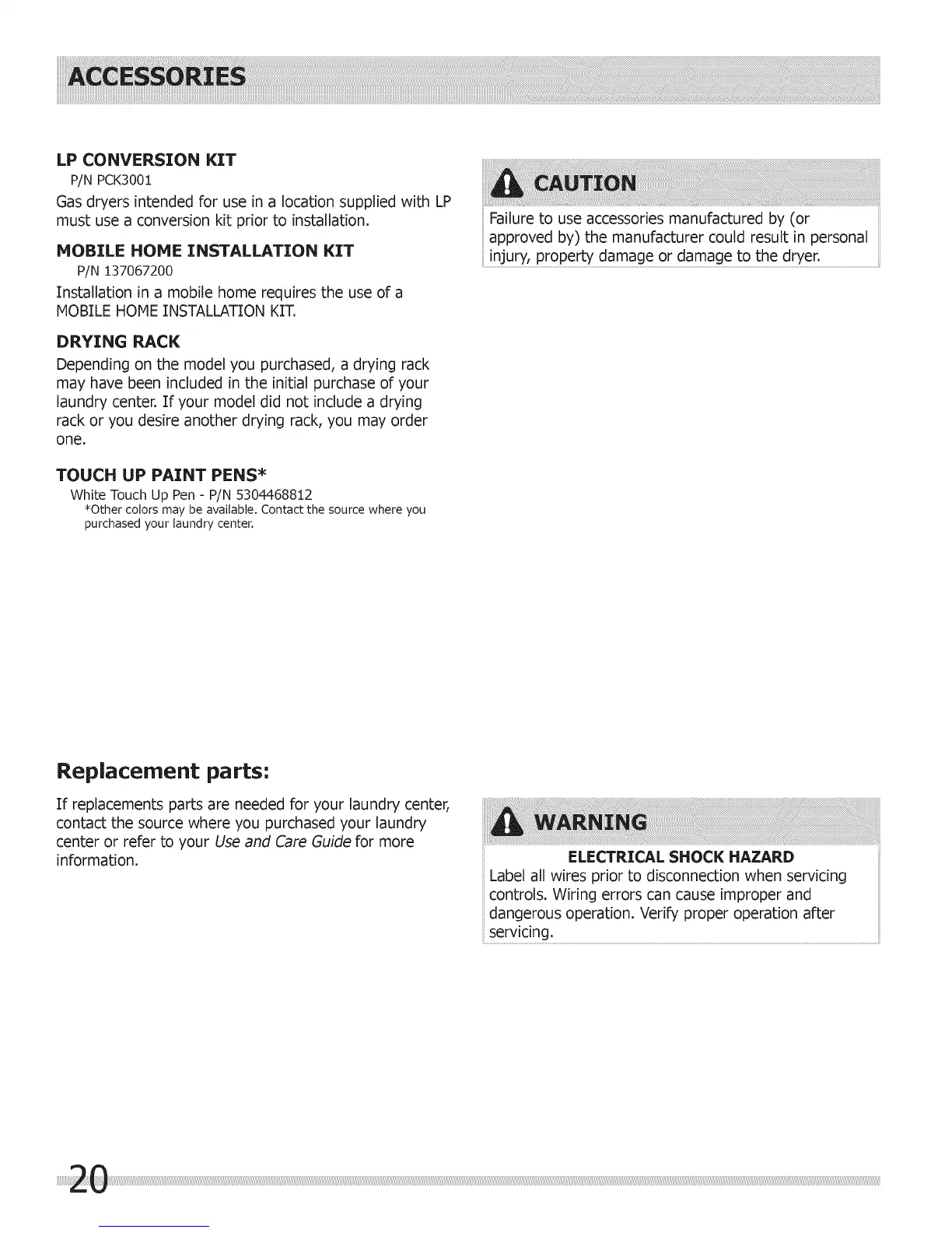 Ifreplacements parts are needed for your laundry center,