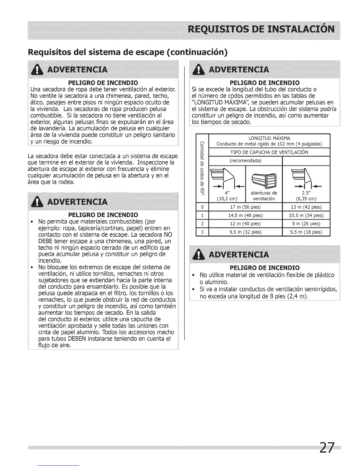 Una secadora de ropa debe tener ventilaci6n al exterior.