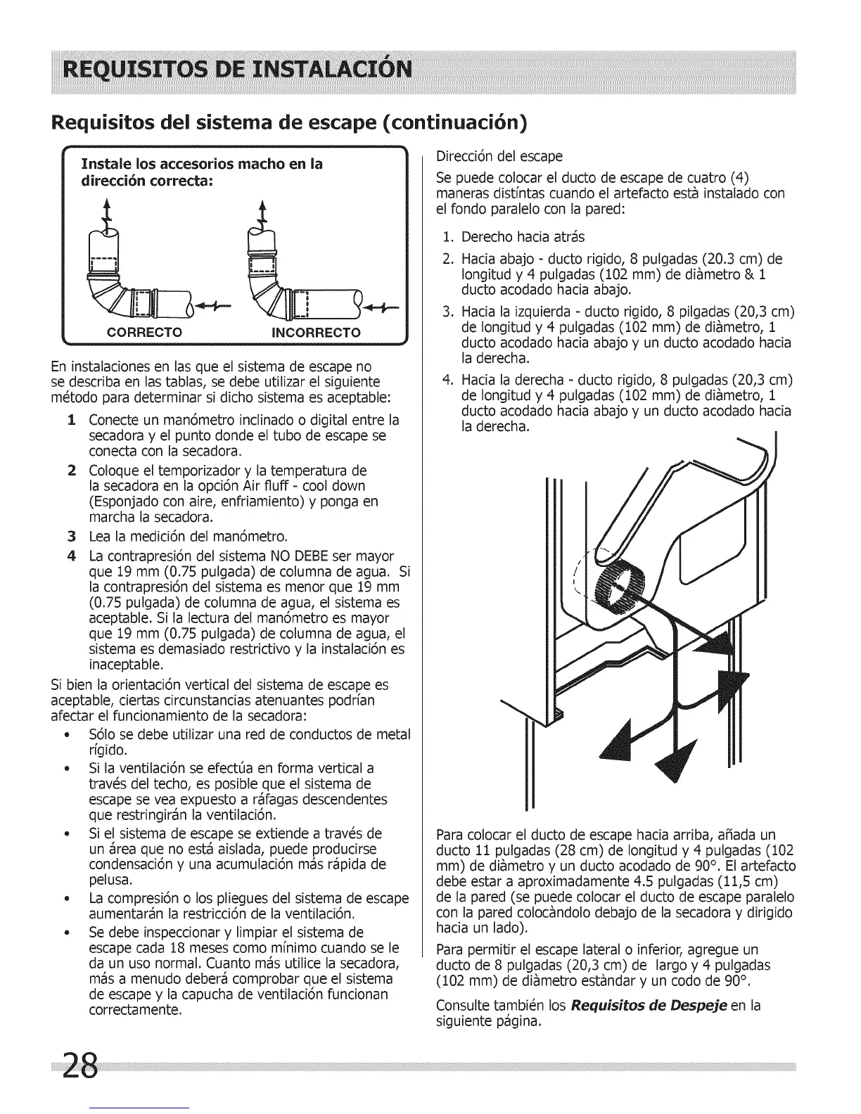 ducto 11 pulgadas (28 cm) de Iongitud y 4 pulgadas (102