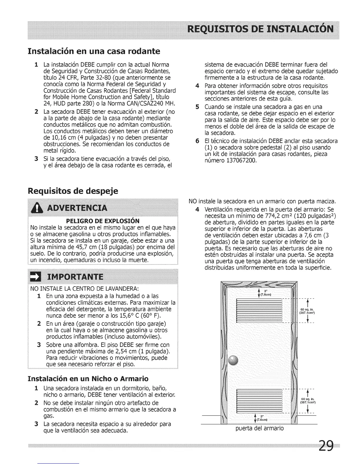 4 Ventilaci6n requerida en la puerLa del armario: Se