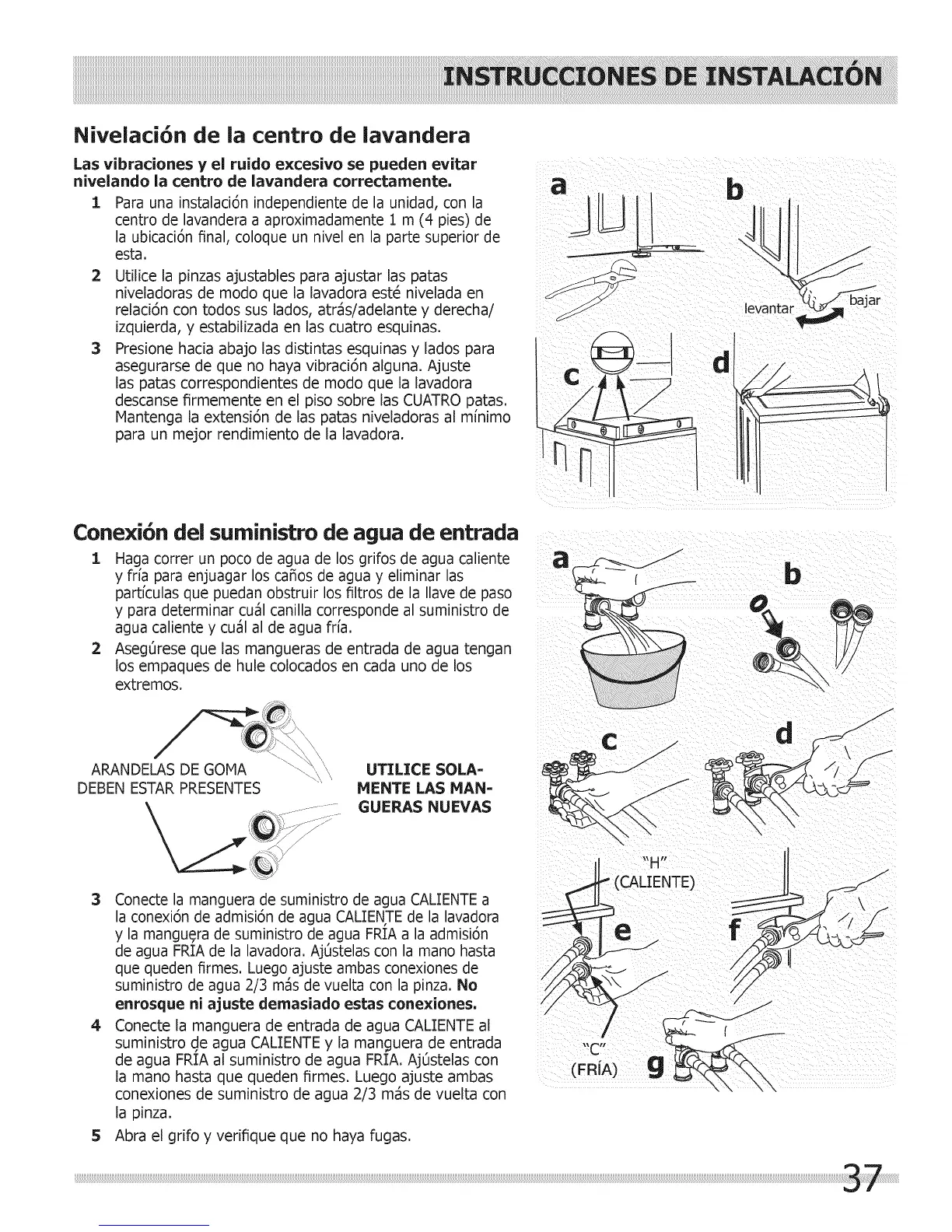 niveladoras de modo que la lavadora est6 nivelada en