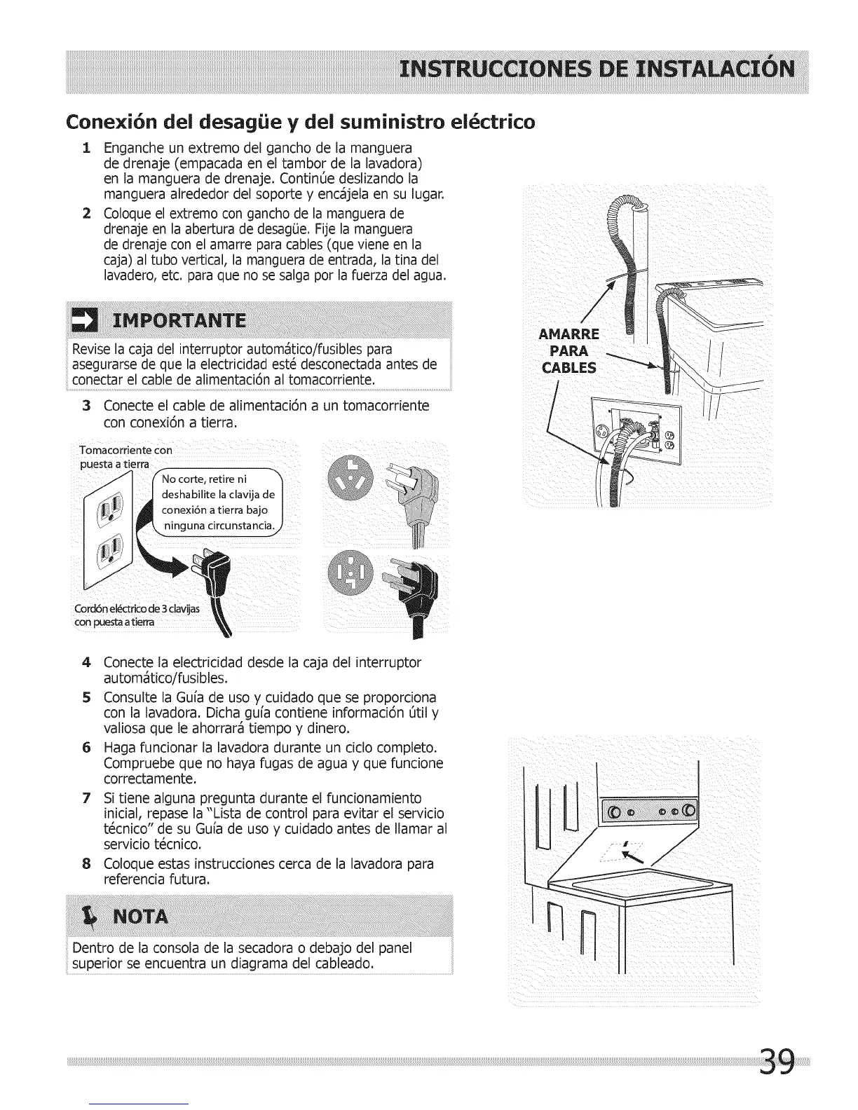 Coloque estas instrucciones cerca de la lavadora para