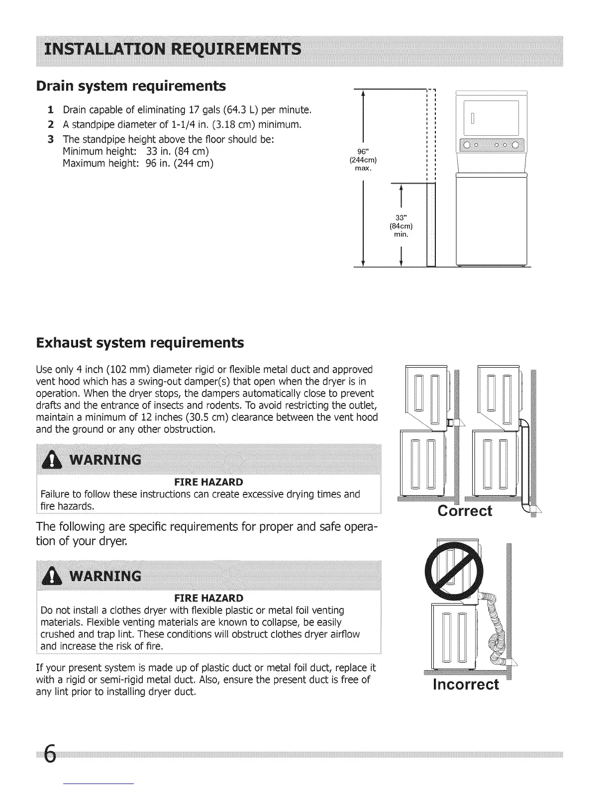 Do not install a clothes dryer with flexible plastic or metal foil venting
