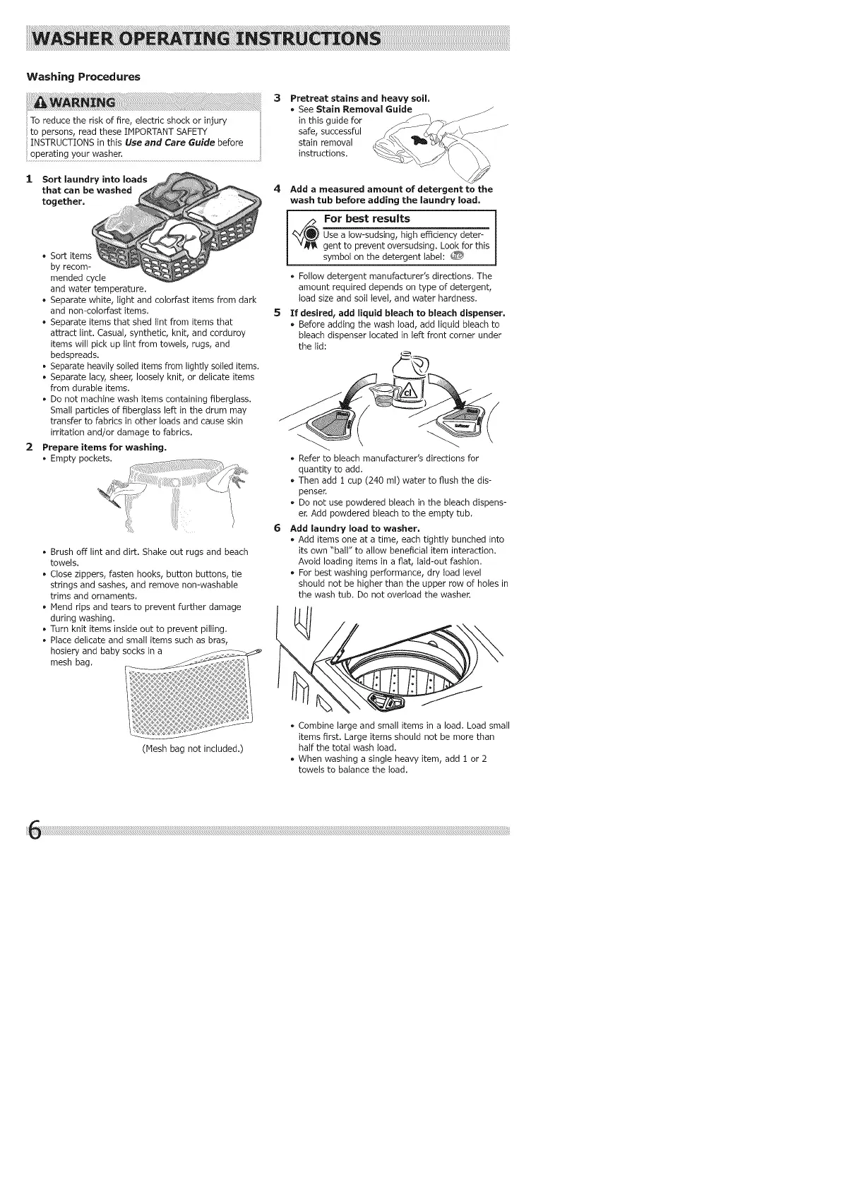 • Separate heavily soiled items from lightly soiled items.