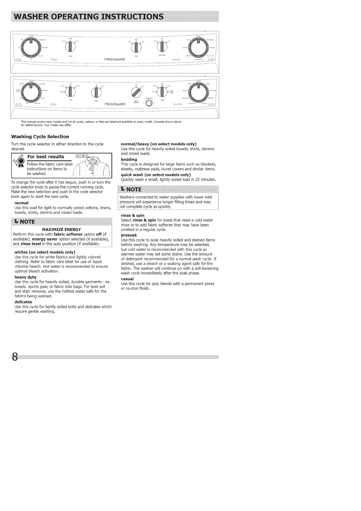 This manual covers many models and not all cycles, options, or features listed are available on every model. Consoles shown above