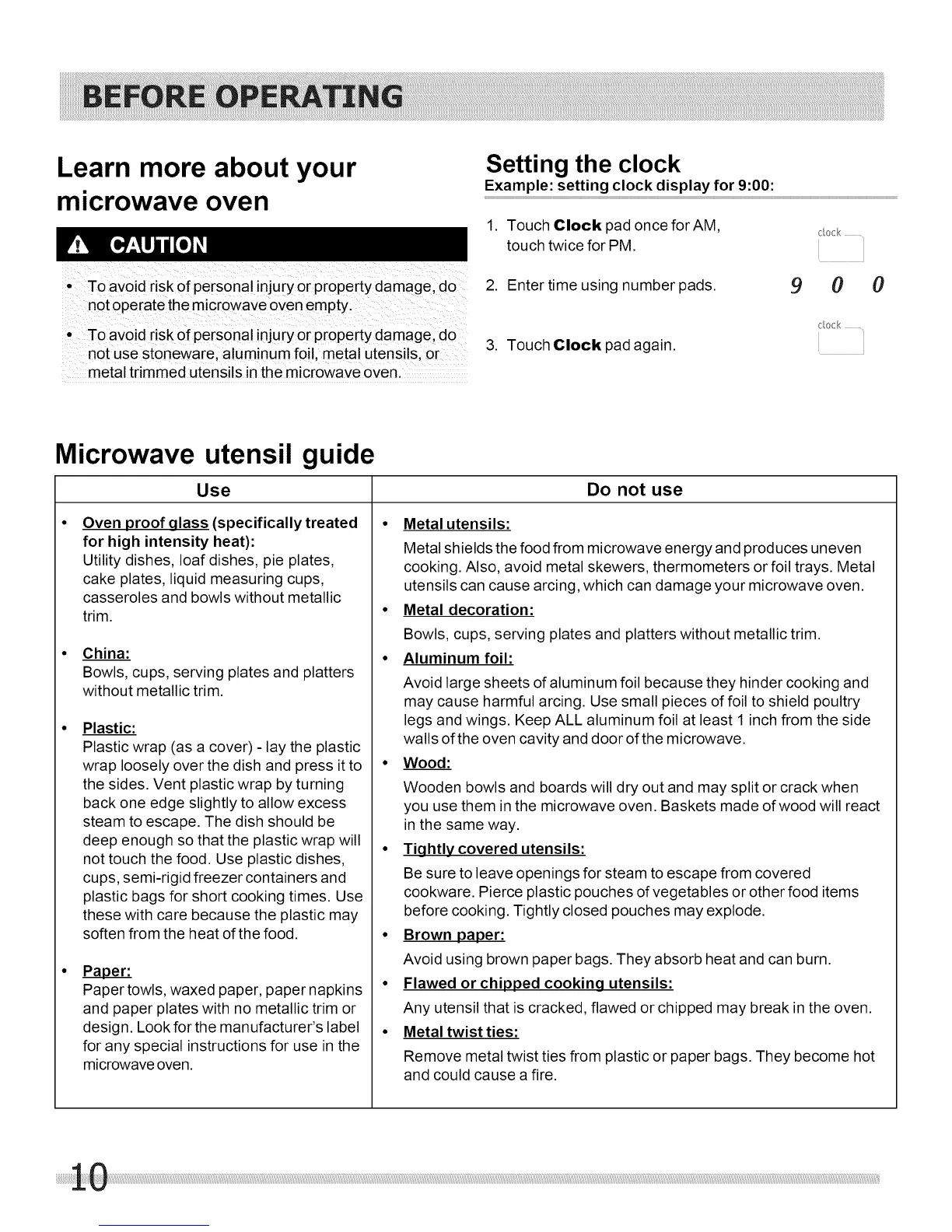 not use stoneware, aluminum foil, metal utensils, or