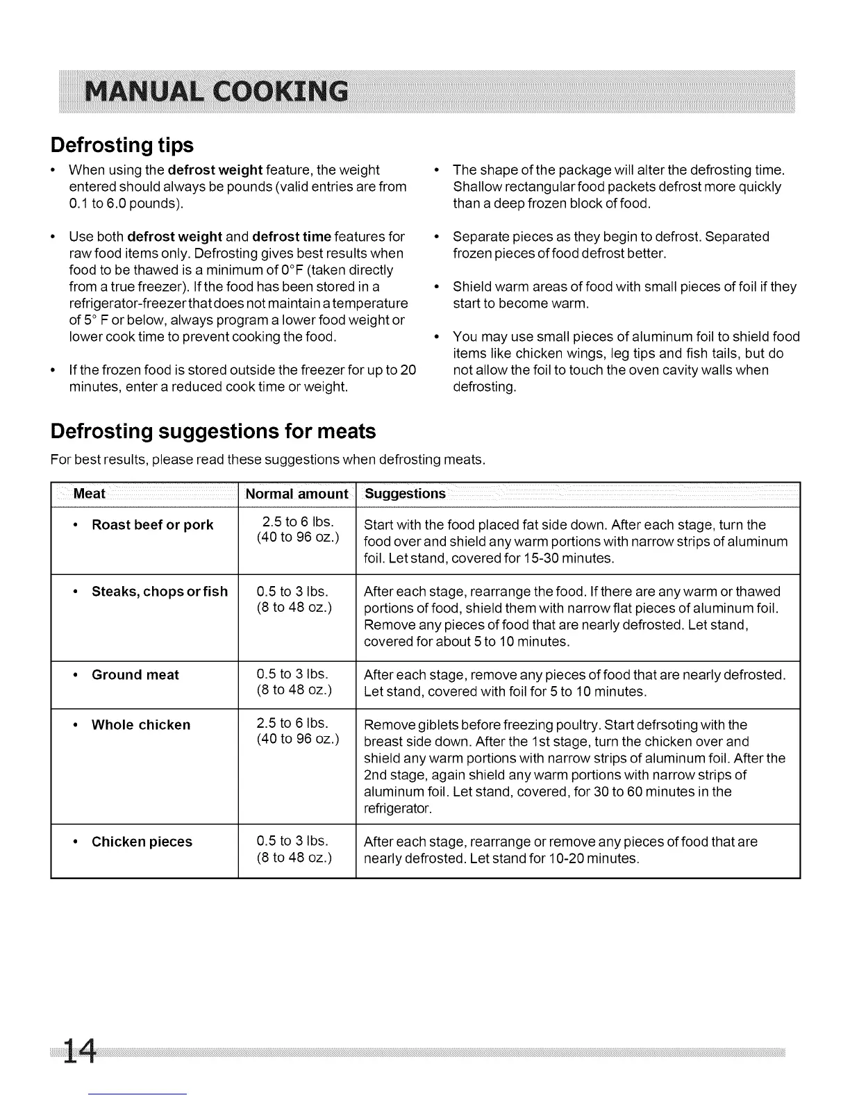 • Ground meat 0.5 to 3 Ibs. After each stage, remove any pieces of food that are nearly defrosted.